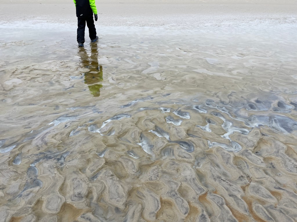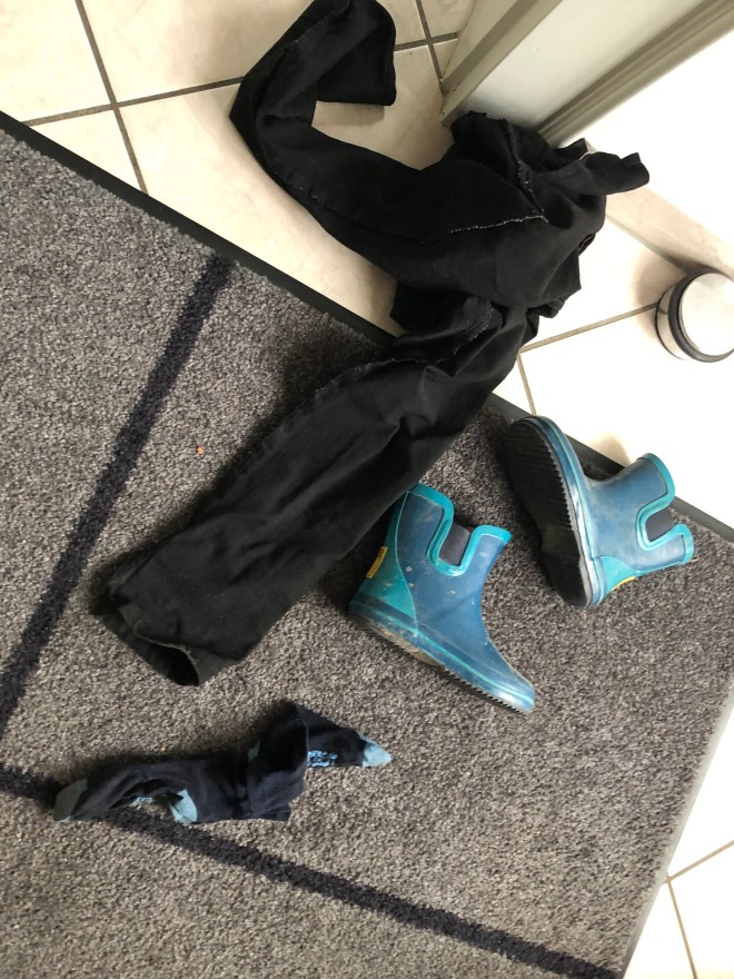 Am letzten Freitag regnete es. Ich weise das Kind an, Gummistiefel zu tragen und eine Regenjacke. Nachmittags komme ich, da steht jemand, der aussieht wie mein Kind, in riesengroßen Boxershorts ohne Socken, Hosen, Jacke in Hausschuhen auf dem Hof. Ich erfahre, dass der Blonde exzessiv in die Pfützen gesprungen sei (weil, er hat ja Gummistiefel an), bis das Wasser nicht nur bis zur Oberkante der Gummistiefel stand, sondern die Hose, die Jacke, die Unterhose, einfach alles, voller Wasser war. Man habe ihm notgedrungen ein Hose von irgendwem gegeben und ob wir die bitte morgen wieder mitbringen könnten?