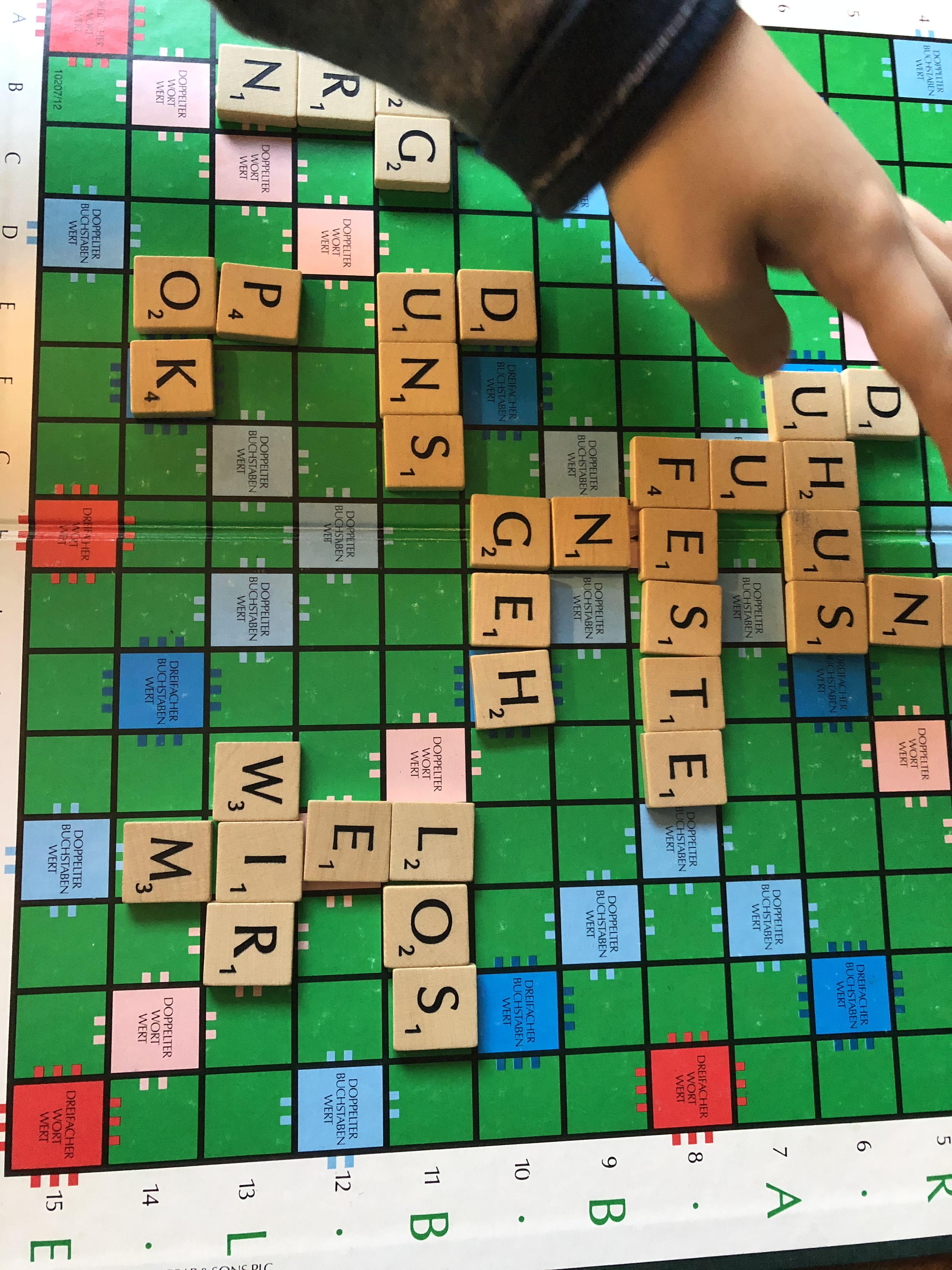 Was gut funktioniert ist, dass wir Nachmittags Scrabble spielen, das Kind und ich. Damit lernen wir Lesen und Schreiben. Gut, „horny“ kann ich nicht legen, auch wenn ich bei optimaler Position bestimmt dreißig Punkte machen würde, aber da will ich jetzt mal nicht kleinlich sein. Wichtig ist, ihn zu motivieren, außerhalb der Schule noch Schule zu machen. Er ist eben nicht wie Chiara-Chantal. Und mir macht es wirklich Spaß, seine Fortschritte zu beobachten, ohne Scheiß, auch wenn mir das den Nachmittag endgültig schrottet. Er wird dann auch bald die Zettel lesen können, die ich überall aufhänge: RÄUM DEIN ZIMMER AUF! ZIEH HAUSSCHHE AN! Das schont mir meine zarten Stimmbänder.