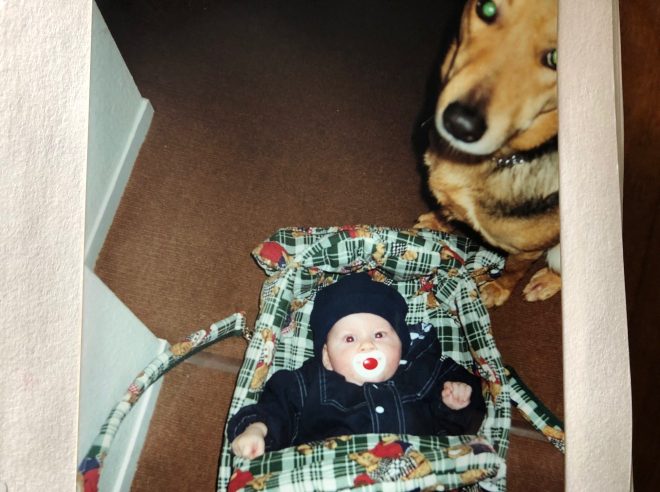 Dann kam der Mann und Benni. Benni hieß Olaf und war ein DSH-Mix unschätzbaren Alters, als er zu uns kam. Benni saß im Tierheim als Wiederholungstäter. Mindestens dreimal wurde er wieder zurückgebracht. Er sei in das Kinderbett gesprungen, man befürchte, er wolle das Baby beißen, hieß es zum Beispiel von ehemaligen Besitzern. Nun erkennt jeder Mensch, der sich mit Hunden ein wenig auskennt, was das Verhakten eigentlich sagen soll: Ihr habt ein neues Baby, das bekommt ganz viel Aufmerksamkeit, ich will auch Aufmerksamkeit!