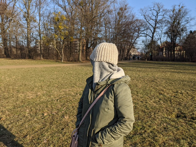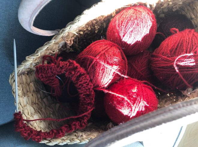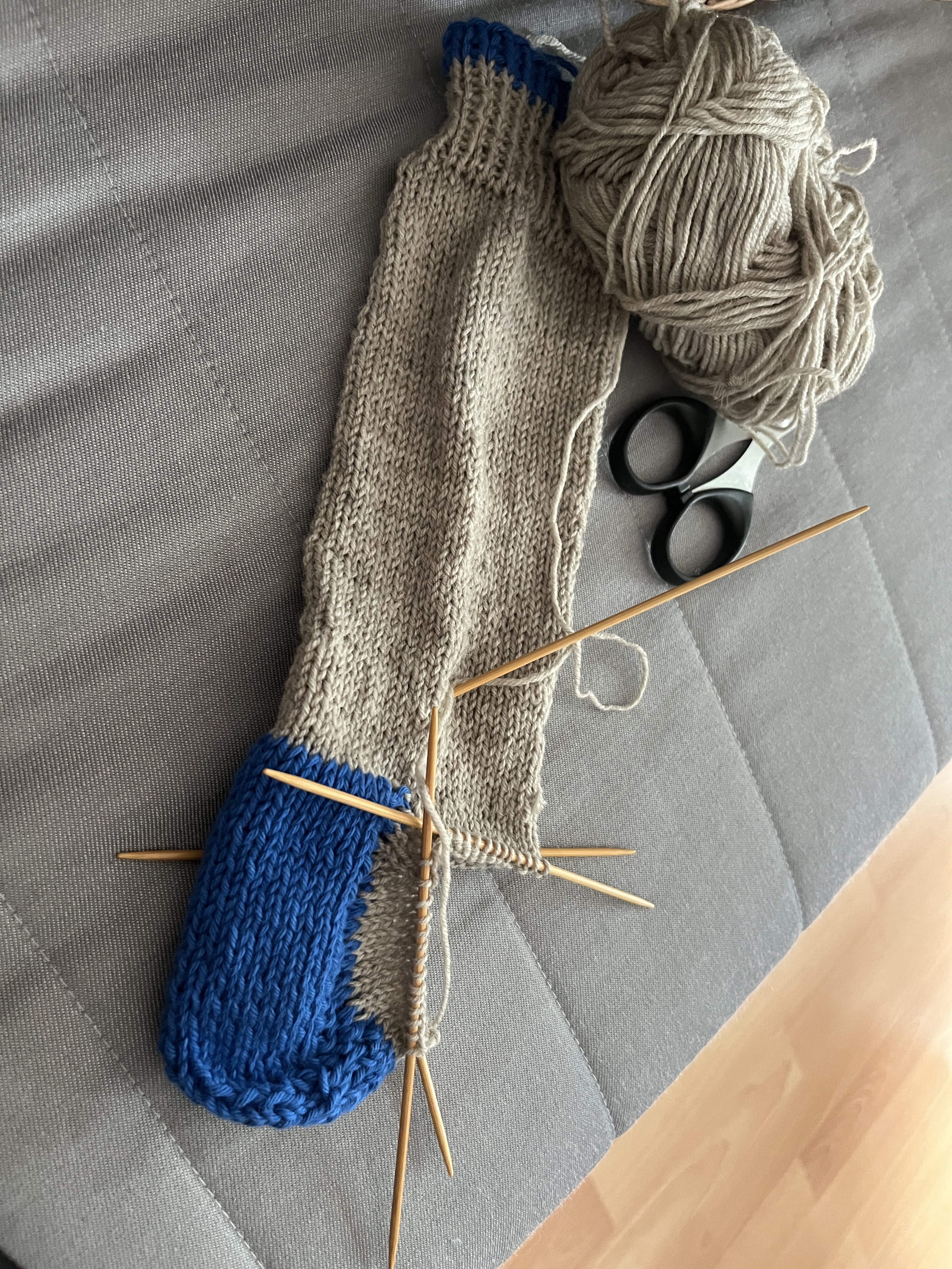 … einen Schal begonnen zu stricken; Fertigstellungsdauer geschätzt: einmal BER