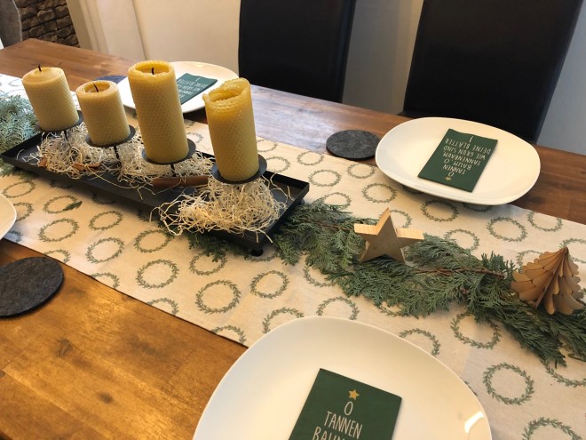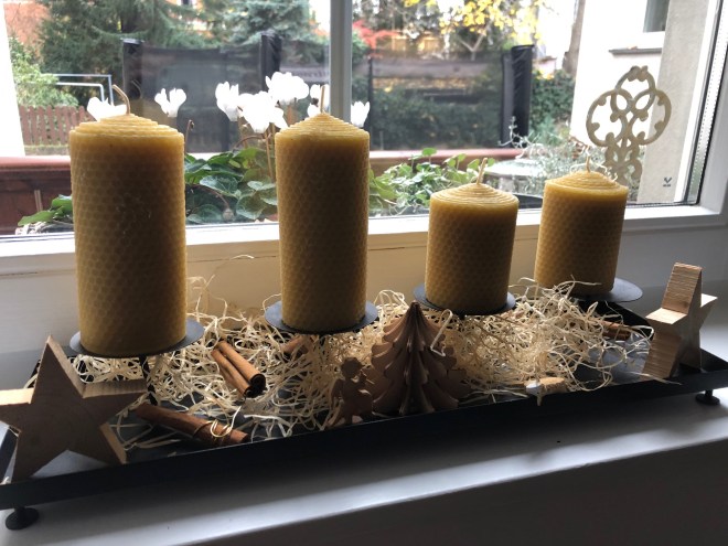 …das diesjährige Adventskerzenunspektakel sehr streberhaft eine Woche vor Fälligkeit aufgebaut