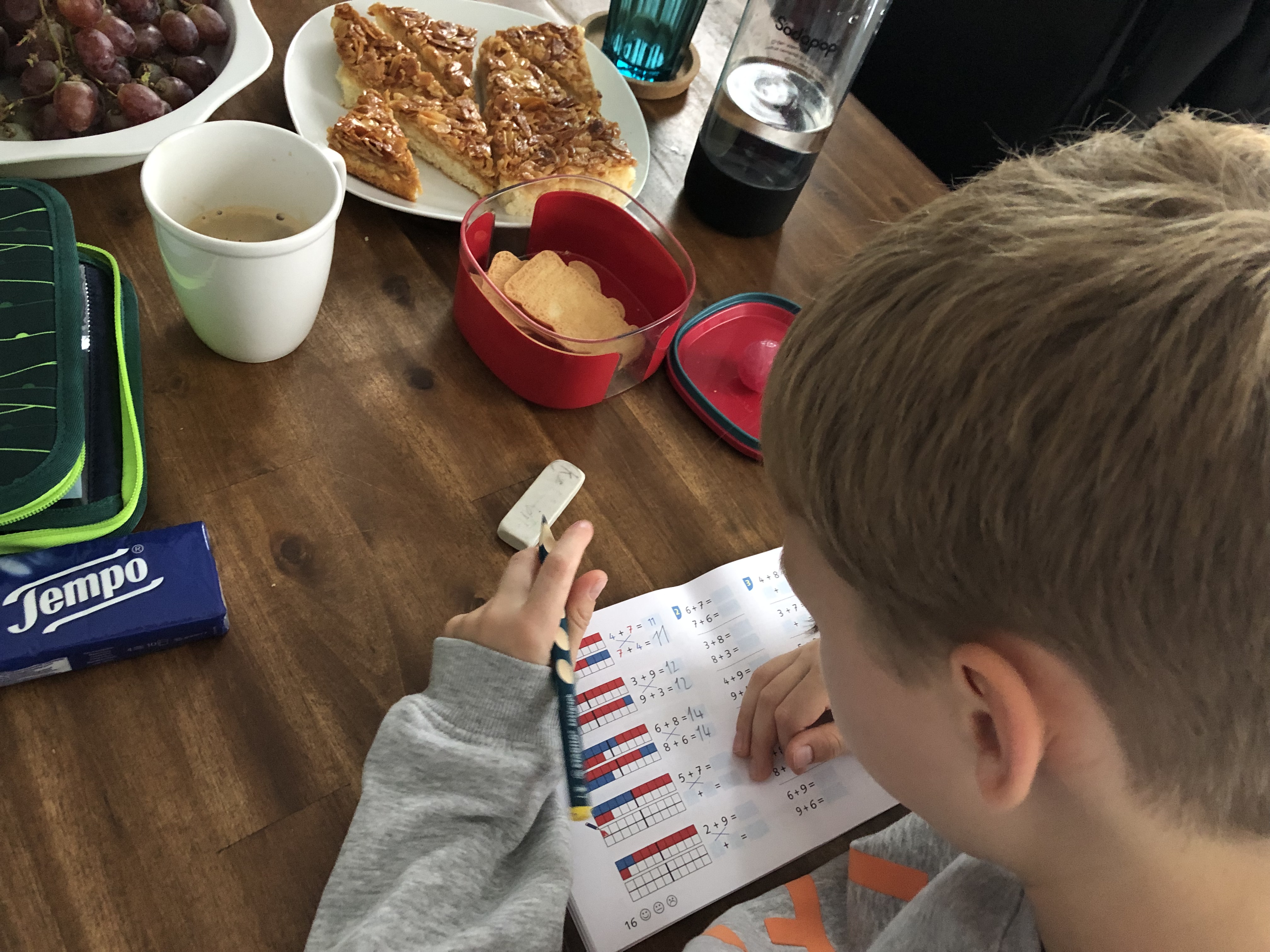 … ein fleißiges Schulkind bei den Hausaufgaben gestreichelt