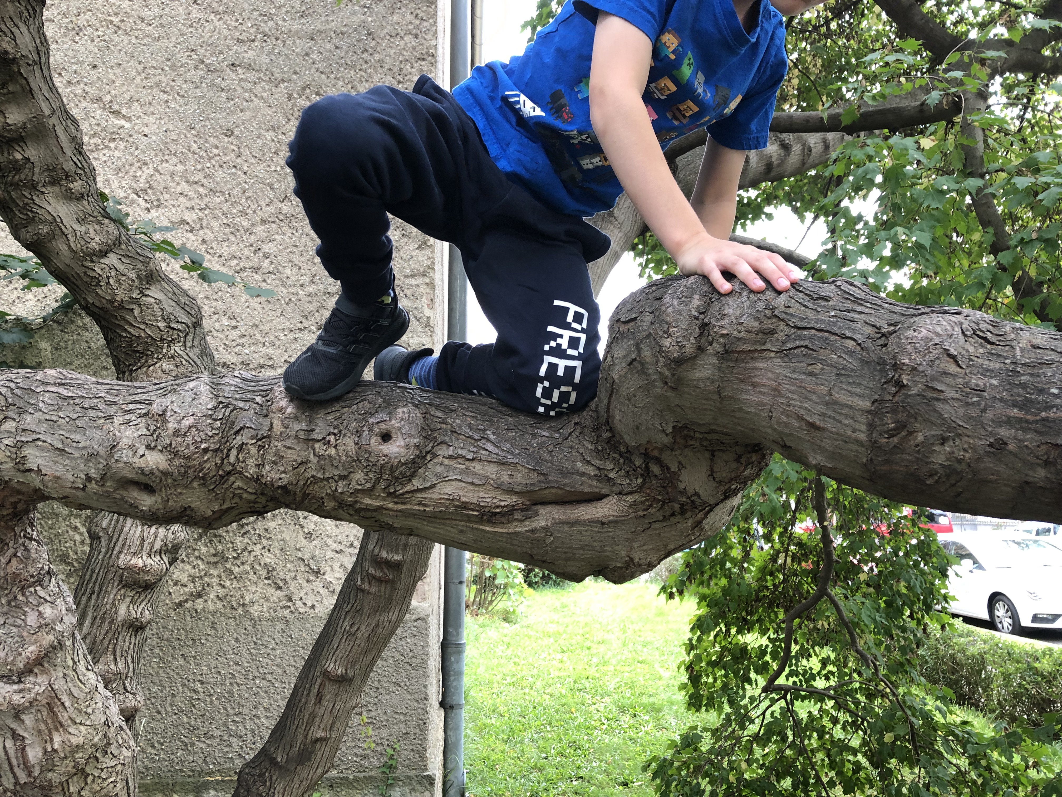 In meiner Lebensumgebung wohnen viele Familien mit Kindern. Das weiß ich seit neuestem. Nämlich, seit der Blondino hier zur Schule geht. Aus tagsüber wie ausgestorben wirkenden Grundstücken und Villen quellen morgens sehr zu meiner Freude kleine Menschen mit Ranzen hervor und strömen in Richtung der beiden Schulen im Einzugsgebiet. Warum man diese Wesen mit Wachstumshintergrund am Nachmittag nie sieht, entzieht sich meiner Kenntnis. Bedauerlich in jedem Fall. Ich will ganz sicher nicht zurück in die Platte – no way- , aber die Innenhöfe waren schon ein gut genutzter Kontaktort. Aber keine Ahnung, ob Kinder heutzutage überhaupt noch „zum Spielen rausgehen“.