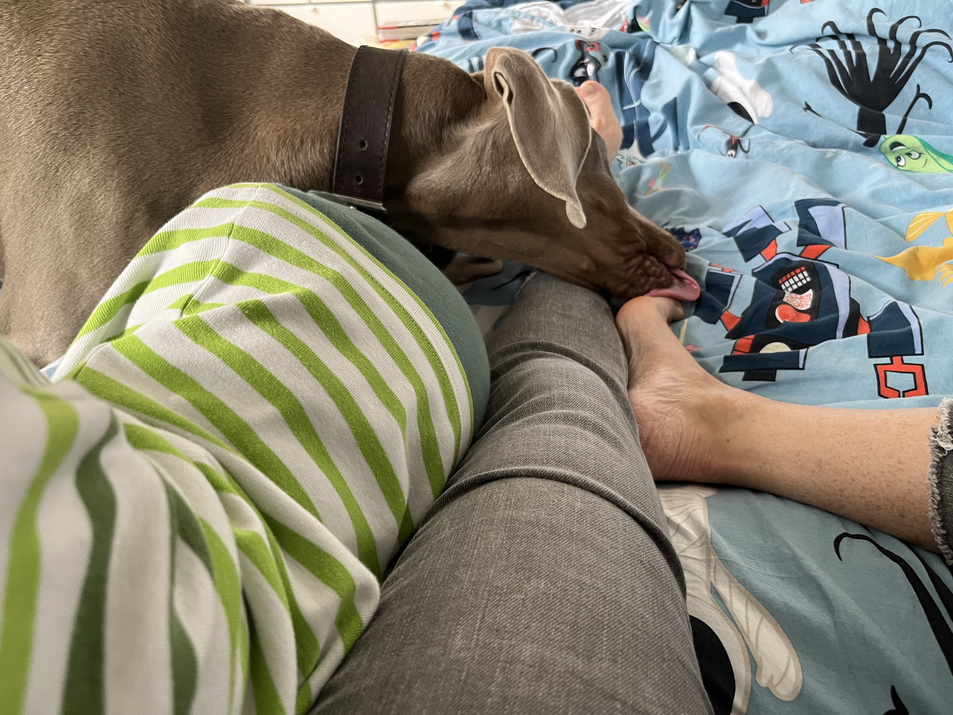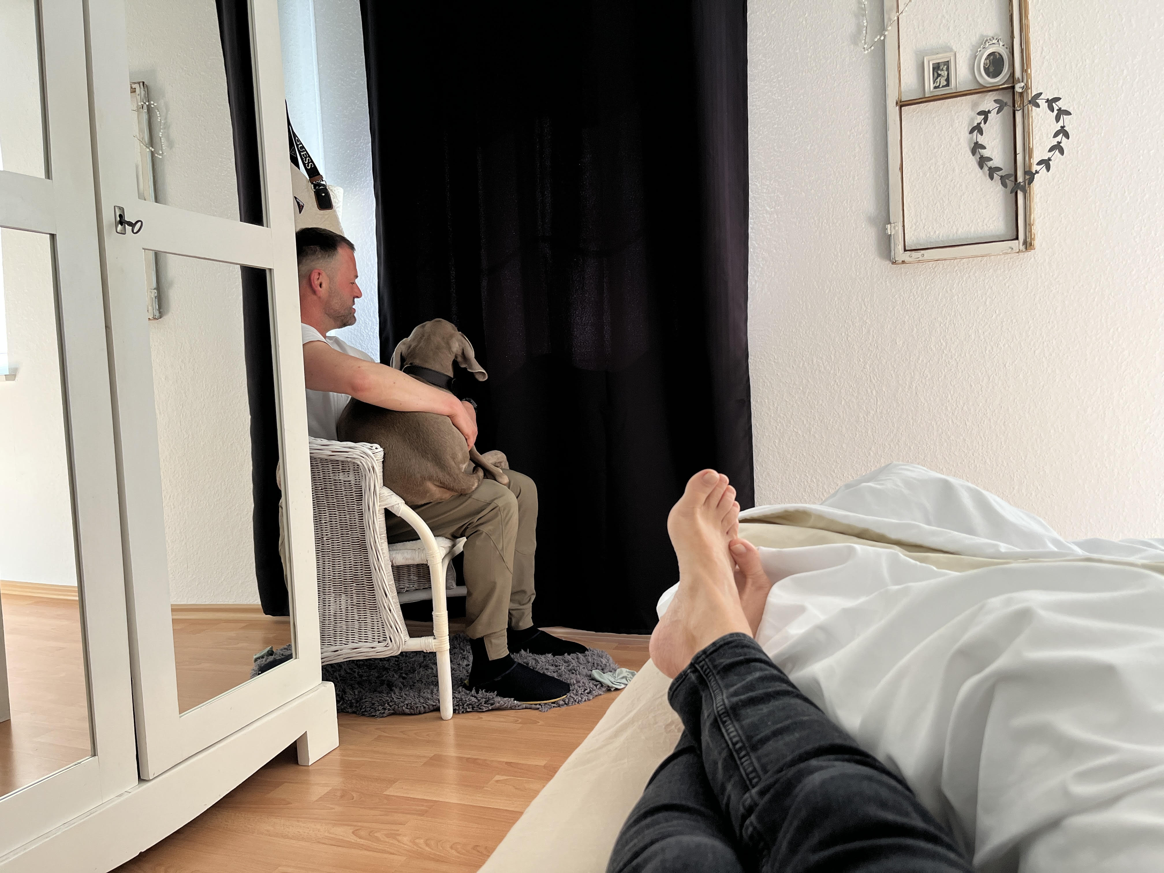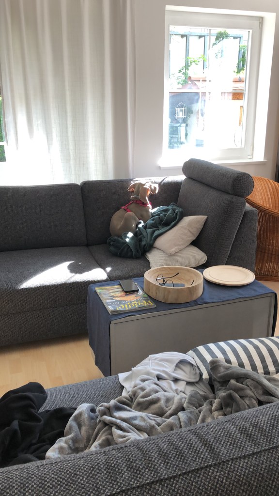 Das, was da gefühlsmäßig meine Bedenken flankiert, ist im Großen und Ganzen das blöde mental-load-Thema, das ich so überhaupt nicht für mich in Anspruch nehmen will. Weil es weh tut! Weil es dort zwickt, wo sich Gewohnheit und Bequemlichkeit Fahrspuren für den Alltag gefräßt haben. Weil wir dann ganz schnell nicht mehr über ein Haustier sprechen, sondern über Allgemeinplätze und wer wann was und am meisten macht. Ich will das nicht.