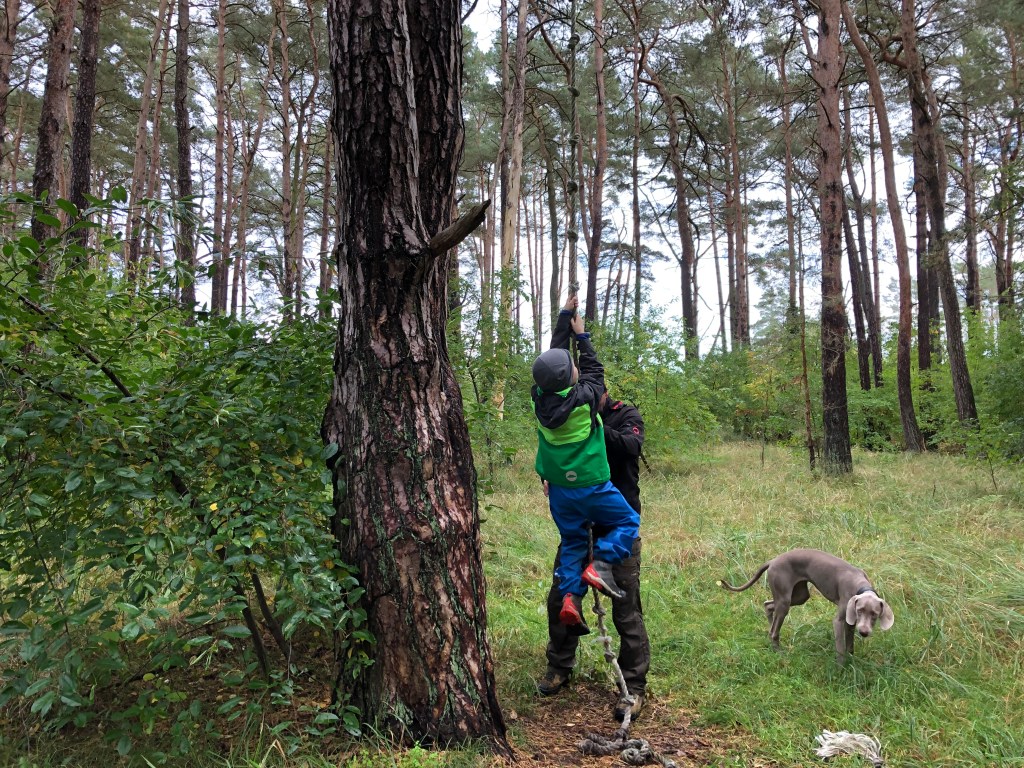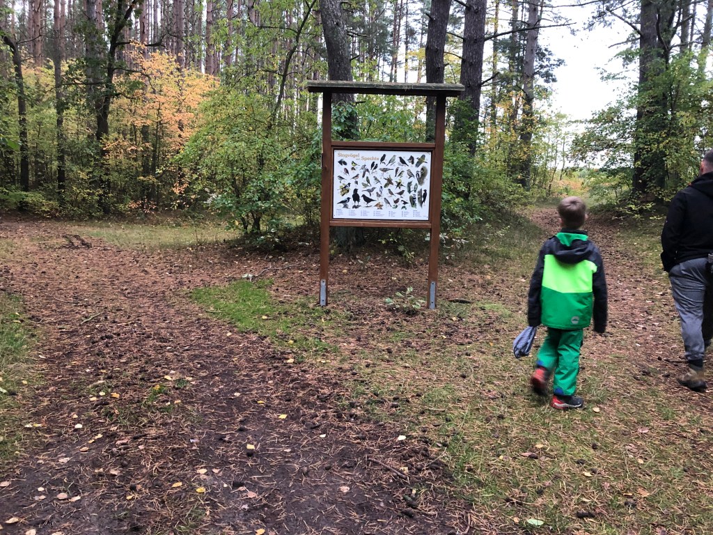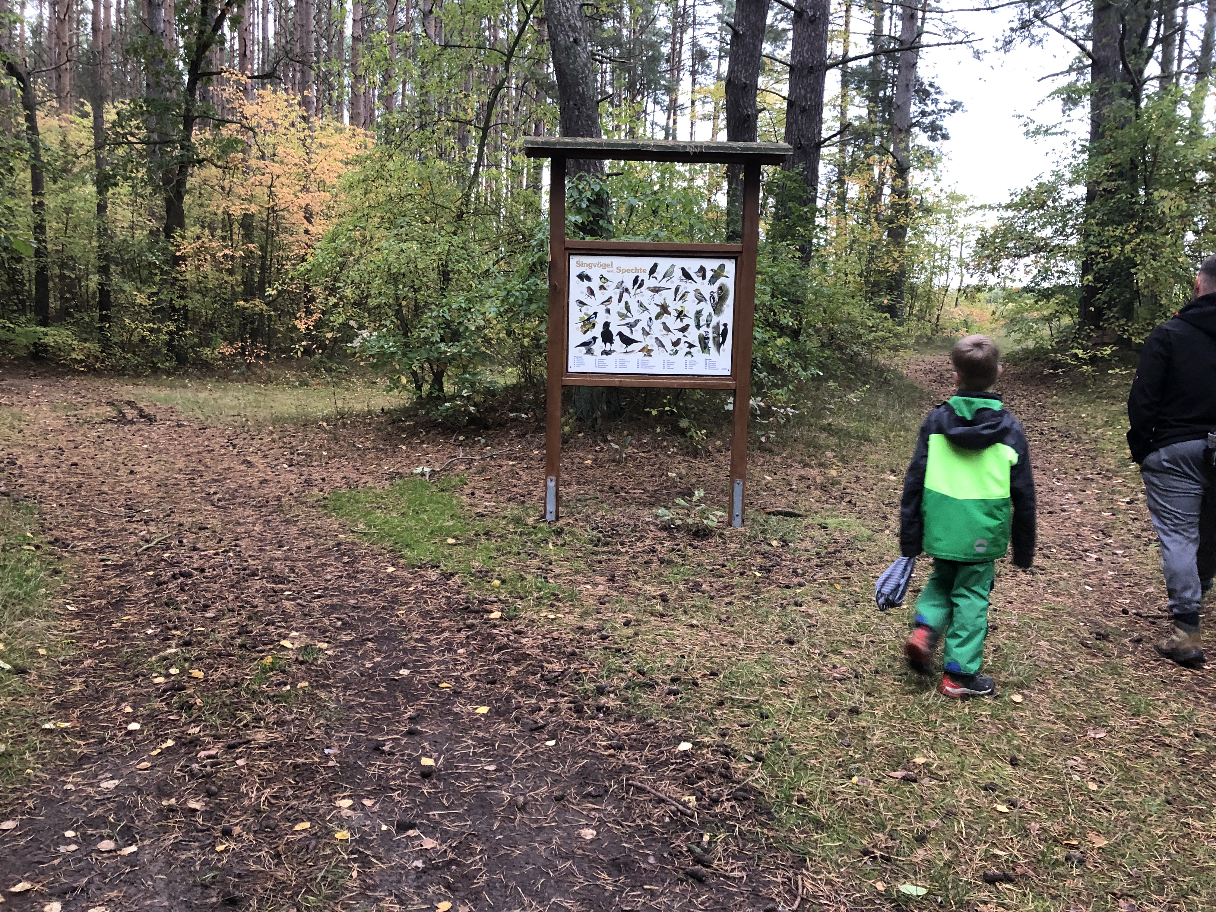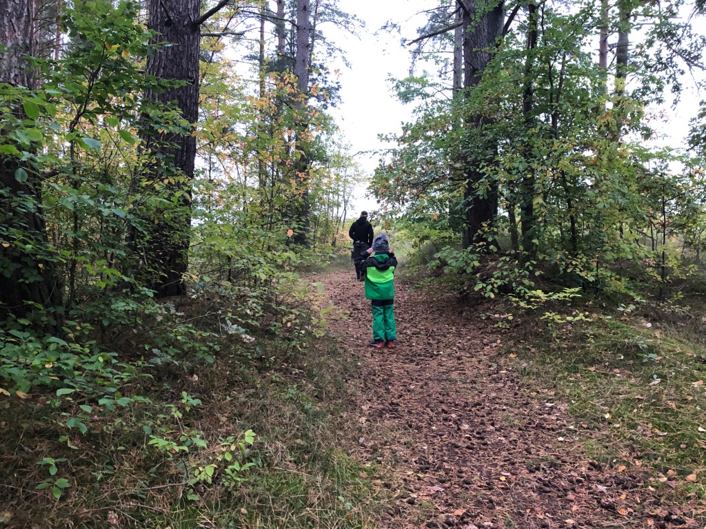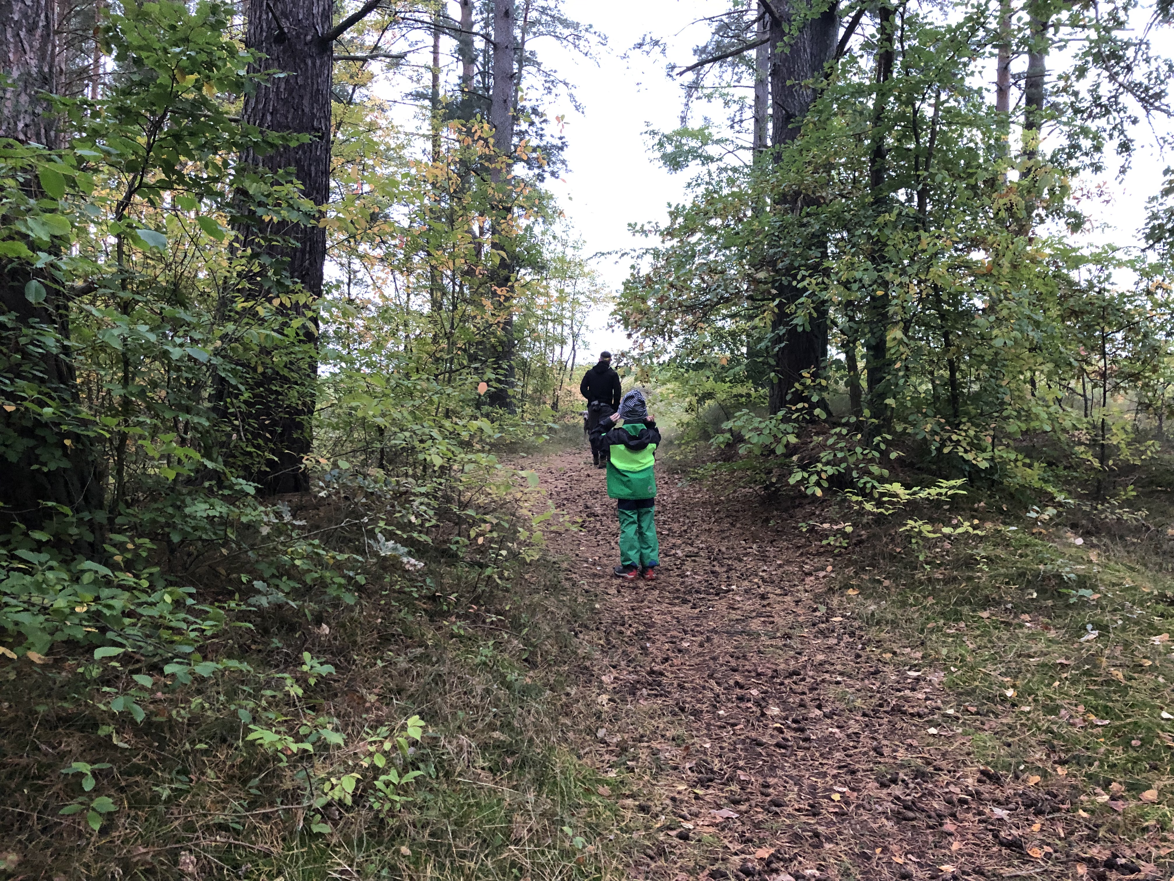 Ich habe neulich auch eine sich auflösende Banane aus den frühen Septembertagen geborgen – in meiner Tasche! Und als der Familienwandertag anstand, suchte ich verzweifelt die Einladung dazu, denn ich wusste zwar noch wann (nämlich am vergangenen Samstag), aber weder die Uhrzeit noch den Treffpunkt. Und so begab es sich, dass der Bärtige einen Waschbären vermutend, abends aus dem Haus tritt und mich vorfindet, wie ich neben der ausgeschütteten Papiertonne inmitten von Zettelchen und Pappfetzchen hocke um die Einladung zu suchen. Diese verfluchte Einladung! Am nächsten Morgen wiederholte sich das Spektakel in aller Herrgottsfrühe zwischen der Restmülltonne und mir ein zweites Mal. Die Einladung blieb verschwunden. Es war aber neun Uhr, ich sei mir sicher, besprach ich den Mann. Da es nicht soooo viele Treffpunkte an der Dresdner Heide gibt, fuhren wir vor neun sämtliche Treffpunkte ab – keine Klasse 1c!