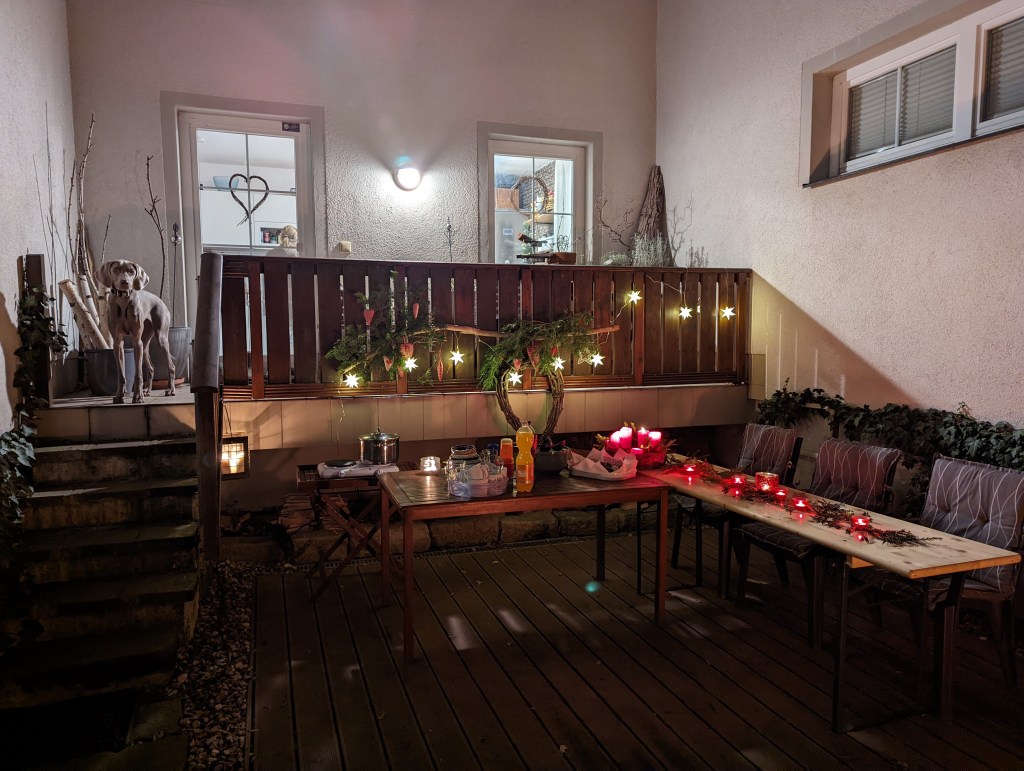 … Kerzen angezündet. Vorm Haus, im Haus, und dabei an all die Menschen gedacht, deren Stimmen ich nur noch in Gedanken höre