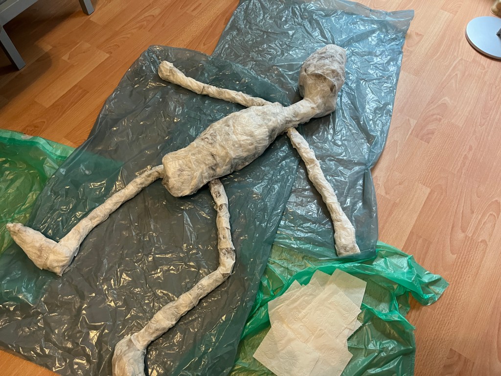 Unten in der Mitte des Bildes seht ihr den zukünftigen Stein des Anstoßes meinerseits. Das Paket war für mich! Ich packte eine Pappschachtel aus, auf der gut leserlich stand: „Heizdecke“. Ich frotzelte, dass das eine wirklich originelle Verpackung sei für einen Ring/ ein Armband/ irgendwas von „La Perla“, der Mann sagte nichts. Ich zerrte das Innenleben der Schachtel ans Licht – eine Heizdecke! Mit Stromkabel!- und war fassungslos. Ich schüttelte die leere Verpackung in der sicheren Annahme, da käme noch etwas Güldenes rausgekullert, nichts! Mein Blick glich in etwas diesen Figuren meiner Kurrende: