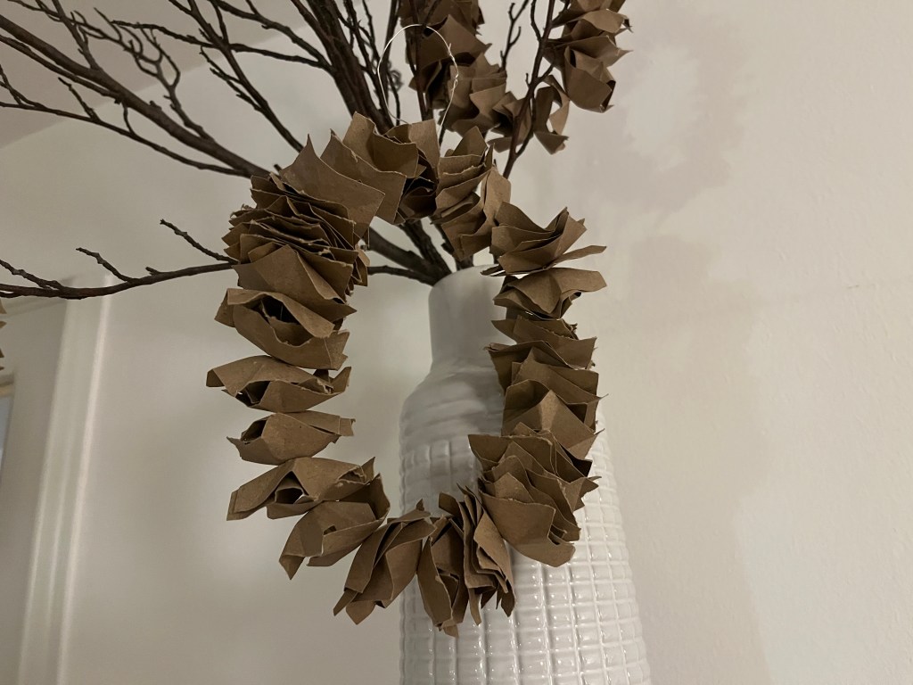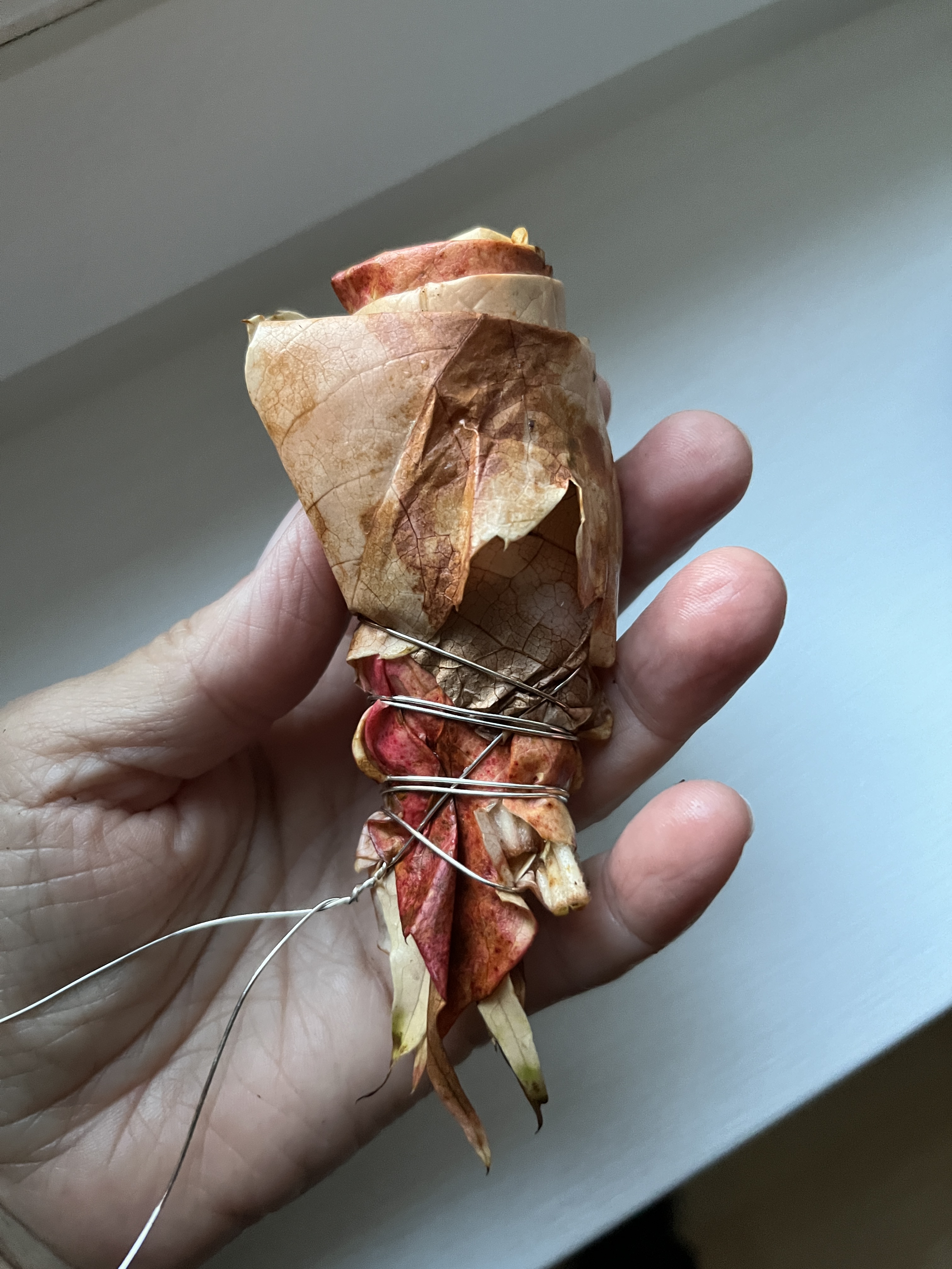 … und anderes Herbstlaub (nämlich Gingko) draußen gesammelt und zum Trocken in ein dickes Buch (Elisabeth George) gesteckt; nächstes Jahr wird das im Herbst ein hübsches Mobile abgeben, die Gingkoblätter mit goldenem Basteldraht umwickelt und an einen knorrigen Ast gehängt