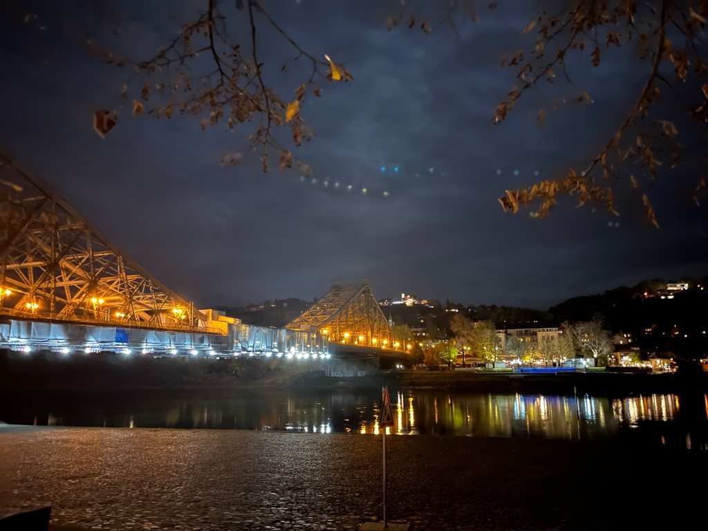 Außerdem ist jetzt rausgekommen, dass die Schäden an der Brücke seit 2019 bekannt waren (hier nachlesen), es aber für unseren Baubürgermeister offenbar wichtiger war, hässliche – und im übrigen nicht mal nachhaltige- Blumenkübel für über dreihunderttausend Euro aufzustellen (hiernachlesen). Das ist die gleiche Bürgermeisterei, die es auch für angezeigt hielt, achthundert funktionierende Straßenbahnhäuschen abreißen zu lassen und für dreißig Millionen Euro schick begrünte Wartehäuschen neu zu installieren (hiernachlesen). Hätte man das Geld anders verwenden sollen? Für eine Brückensanierung gar? Was weiß denn ich. Ich weiß schon lange nichts mehr. Ich erinnere mich aber in dem Zusammenhang an die Diskussion um die Waldschlösschenbrücke, deren Bau Dresden die Aberkennung des Weltkulturerbes einbrachte (hier nachlesen) und die so vehement für Streit und Unmut sorgte. Bloß gut, dass sie da ist! Nun, da Dresden jetzt wieder eine Brücke weniger für den täglichen Straßen-, Berufs- und Touristikverkehr zur Verfügung steht, ist „Stehen“ das Wort der Stunde. Tatsächlich überlege ich ich oft, dass ich mit „stramm marschieren“ sicher schneller durch die Stadt käme als aktuell. Blöd, wenn man täglich über irgendeine Brücke muss. Und doppelt blöd, da ja nicht nur die Brücke nun nicht passierbar ist, sondern ebenfalls die Zufahrtsstraße, die als Verkehrsader durch die Stadt ebenfalls super wichtig war. Der Verkehr auf die Radwege umzulegen, hat auch zum Teil zu Absurditäten geführt (hier nachlesen). Das ist keine Option.
