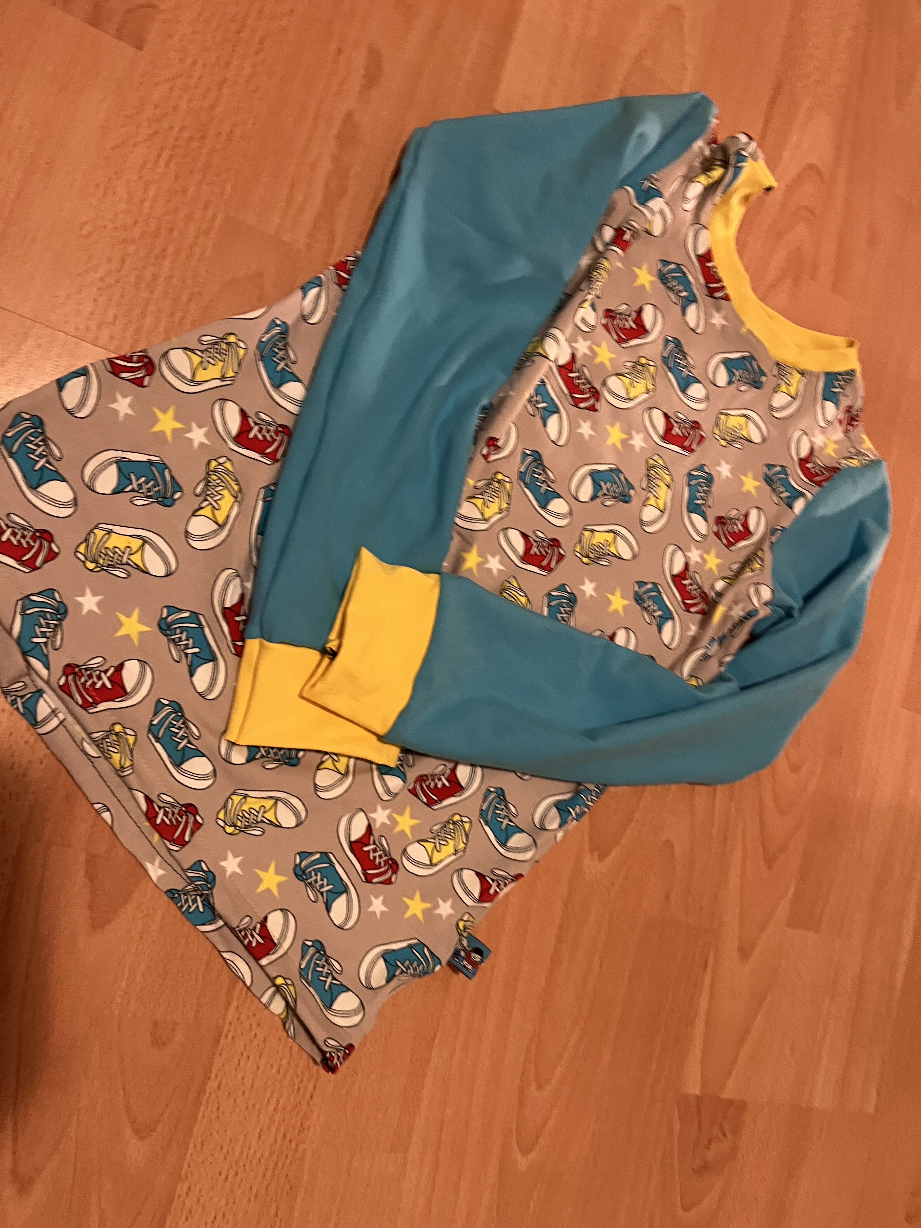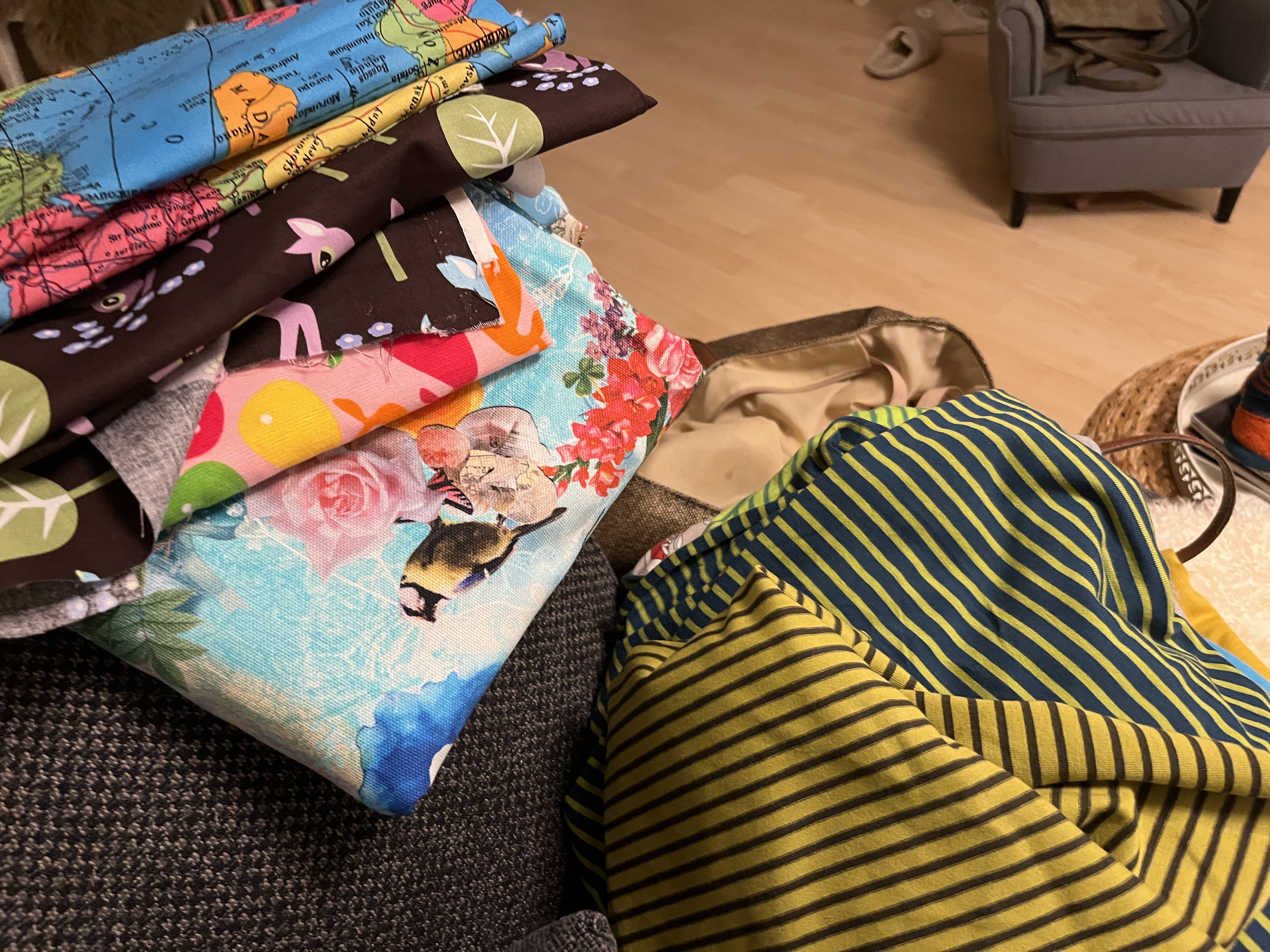 … aus einer löchrig gewordenen Fleecedecke frei Schnauze eine Kuschelhose für das Kind genäht