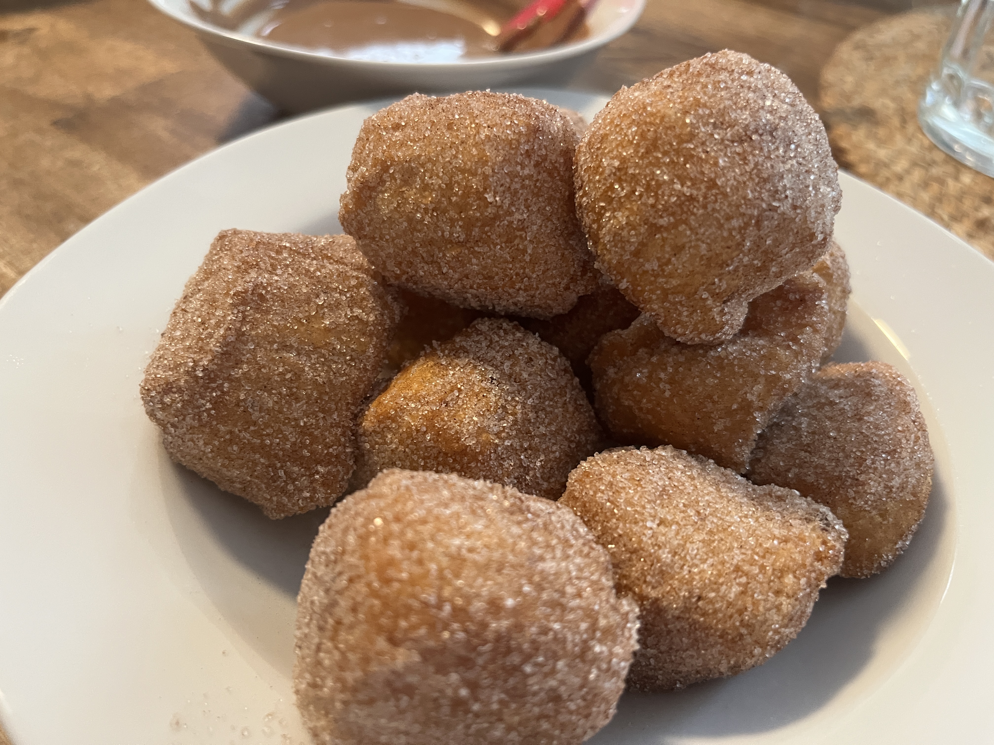 Irgendwann sind die Ritterlein trocken und knusprig und dürfen auf dem Teller Platz nehmen. Bei mir gab es Zimtzucker obendrüber und Kokos-„Joghurt“ mit ein paar Beeren aus dem Frost. Der Bubi hat seine mit Ahornsirup gegessen und für sehr lecker befunden.