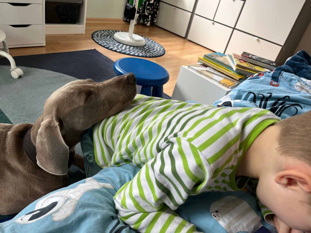 Schlafen ist auch so ein Thema. Nun hatten wir den Blondino endlich so weit, dass er auch mal bis sieben oder halb acht pennte, muss er nun sechs Uhr fünfzehn aufstehen – ein Drama! Fünf Tage lang zerre ich morgens ein vollkommen verschlafenes Kind in die Küche: „ich bin sooooo müde! Lass mich doch einfach in Ruhe!“, dann ist Wochenende und er hat es dann irgendwie verinnerlicht: Sechs Uhr fünfzehn wird er wach. Kein Scheiß. Ich bin vollkommen runter mit den müden Nerven und erkläre ihm, bis die Uhr um sieben anzeigt, bleibst du liegen! Das üben wir Samstag, das üben wir Sonntag und wann hat er es dann? Genau, Montag! Es ist nicht zum Aushalten. Ich werde nie wieder wach sein…