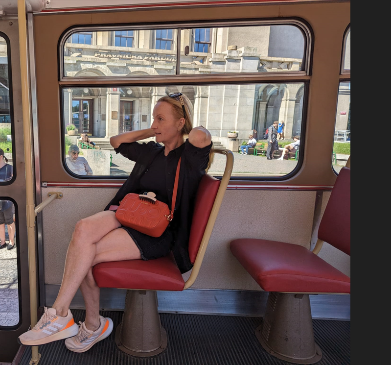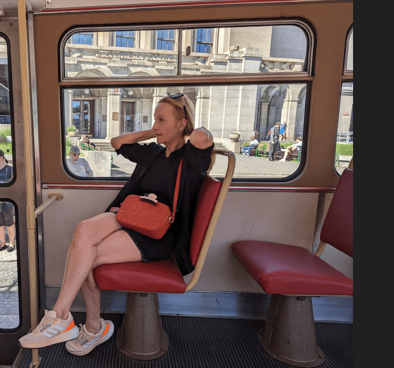 Ach, und hier noch ein Foto vom Liebesurlaub in Prag letztes Jahr. Ohne Kinder und ohne pflegebedürftige Eltern. Habe beschlossen, ich werde mich ab sofort nur noch in Straßenbahnen ablichten lassen. Ohne Kinder und pflegebedürftige Eltern.