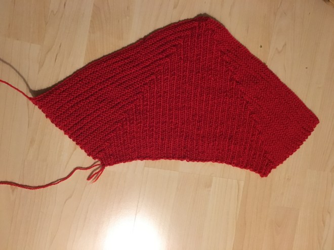 Danach habe ich einen Streifen Bündchenstoff unter leichtem Zug in die ausgeschnittene Öffnung genäht.