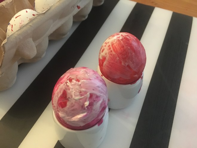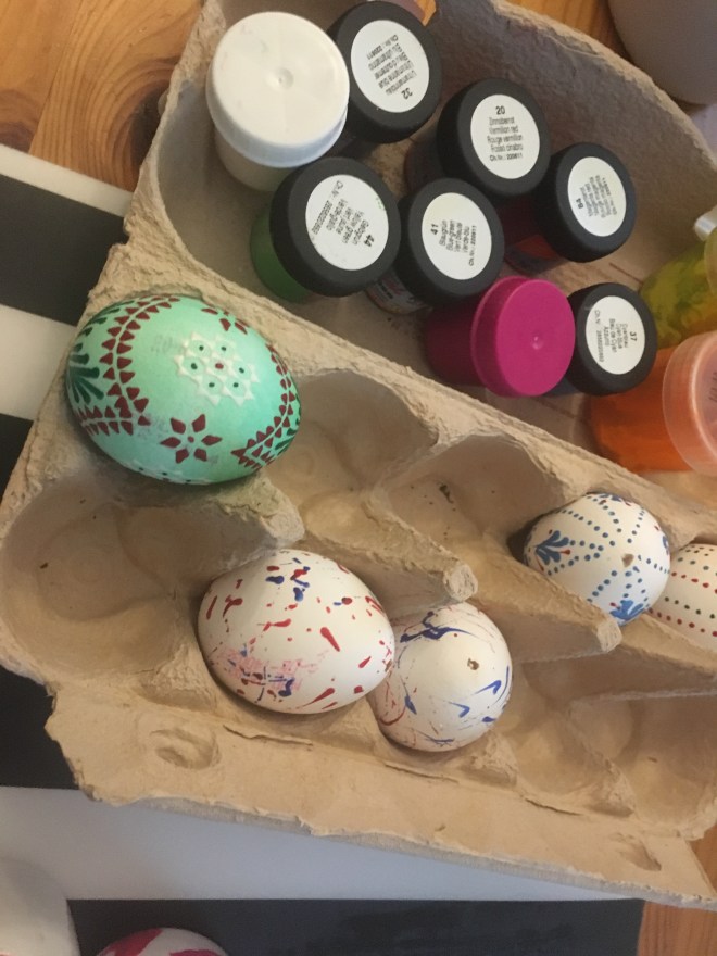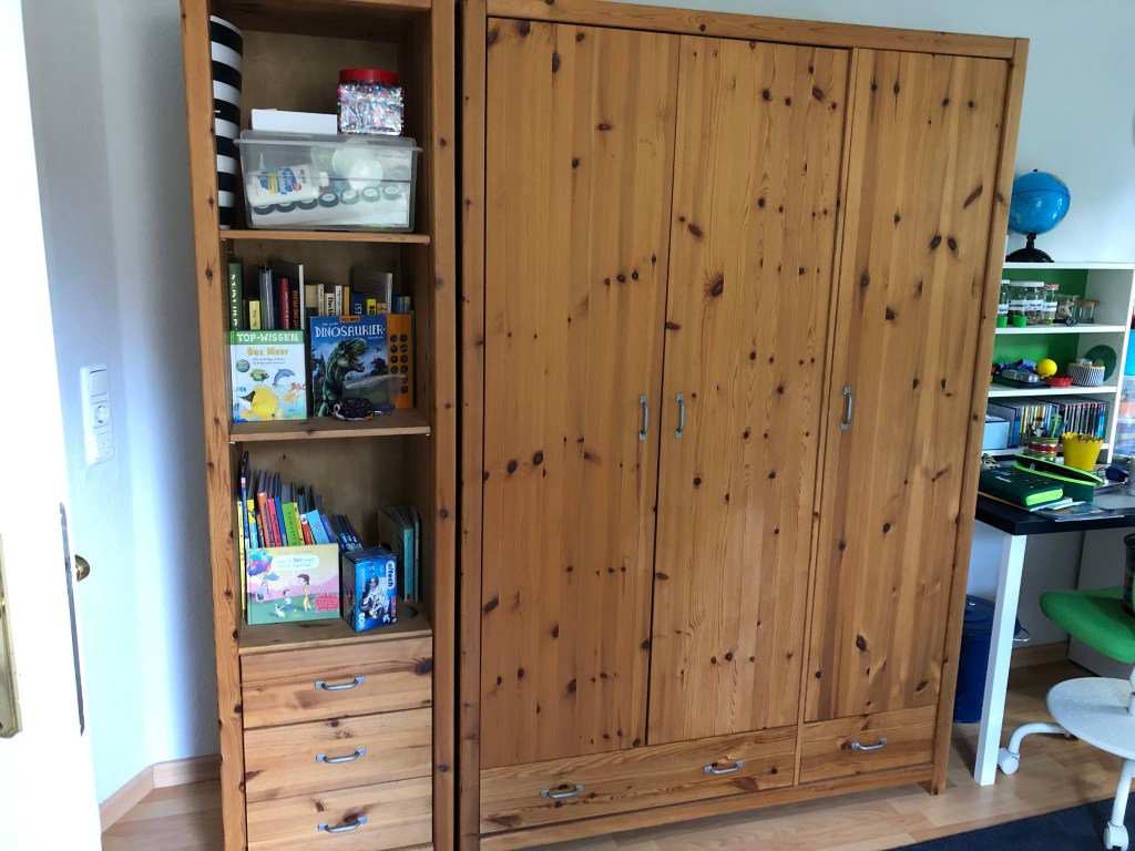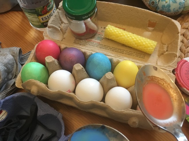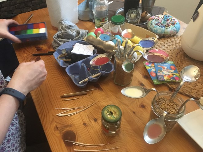 … und ein hässliches Bild, das sich partout nicht von seinem Rahmen trennen lassen wollte, komplett lackiert. Innen kam Tafellack drauf, da kann ich dann einen philosophischen Sinnspruch draufschreiben. Oder ich benutze das als Notizbord, zum Beispiel, um mir neue Schimpfwörter zu notieren, wenn sie mir einfallen. Senkhodenpendler, Schnitzelpriester…