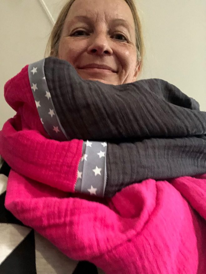 Und so sieht das Handtuchlätzchen dann im Einsatz aus.