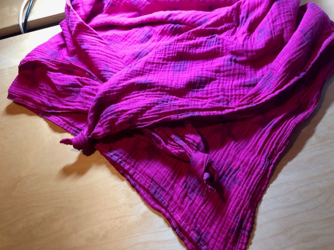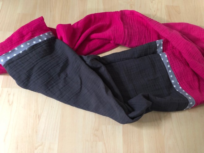 Als letzten Schritt habe ich das ganze außen rundherum mit Schrägband eingefasst. Fertig!
