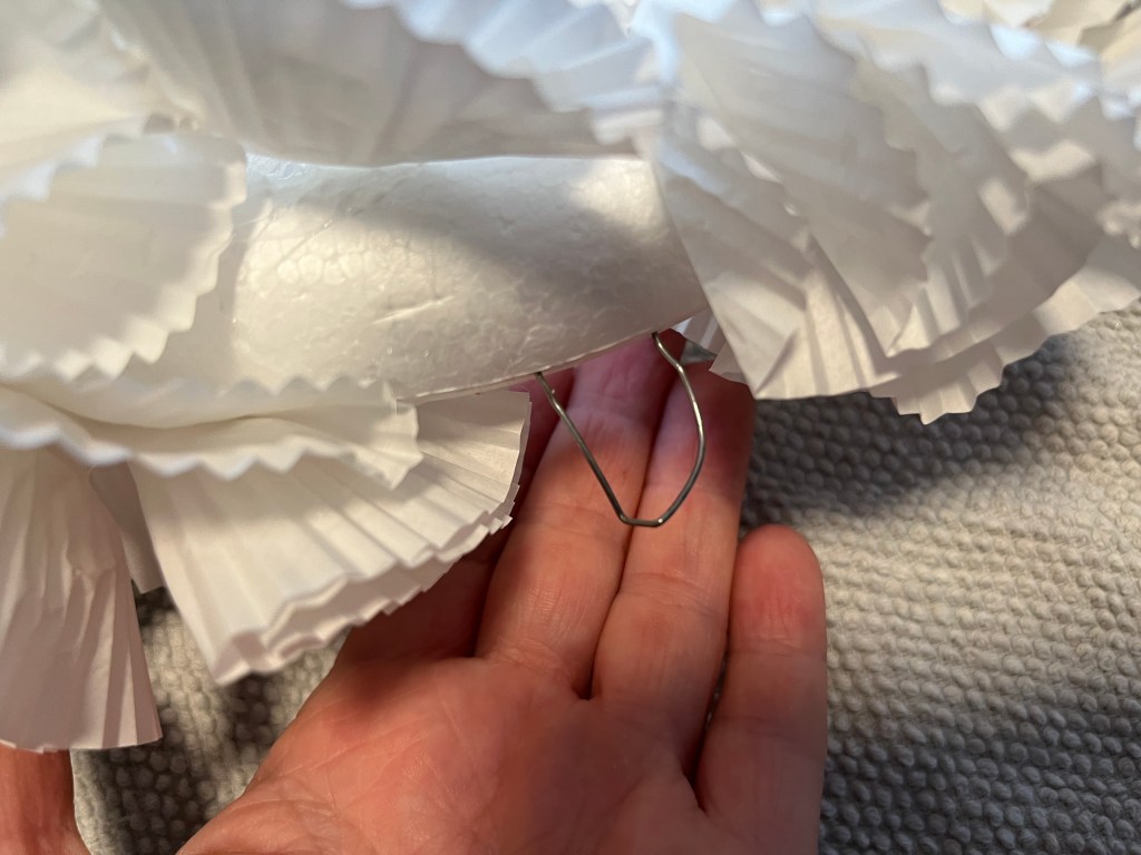 Als nächstes habe ich oben mittig etwa fünf Zentimeter eingeschnitten und unterhalb ein Loch für den Kopf ausgeschnitten. Ich habe dafür aus schierer Faulheit eine Müslischale als Maß verwendet, sie hatte den ungefähren Umfang des Kopfausschnittes vom Modell-Lätzchen, das ja zumindest am Kopf gut passte.
