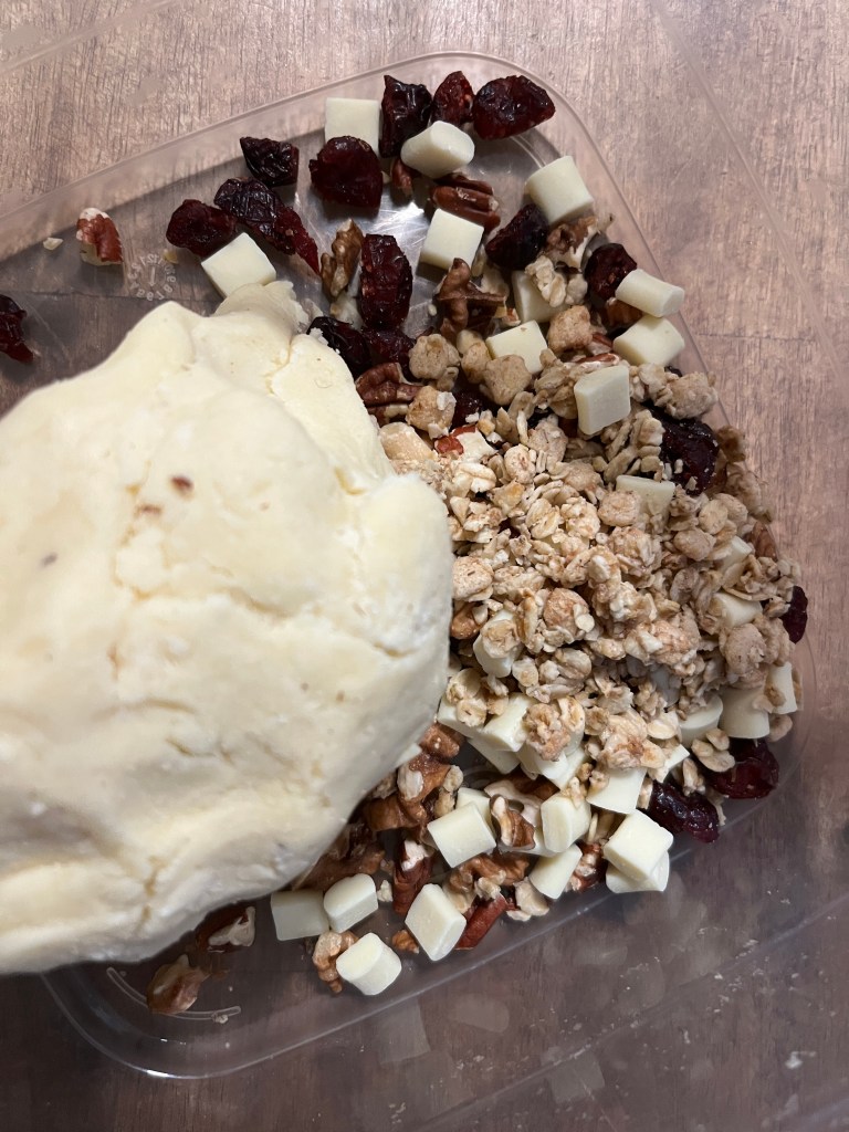 Zwei Tassen Hafermilch mit einem Portionslöffel Vanilleprotein (alternativ zwei Esslöffeln Vanillepuddingpulver plus einem Teelöffel Vanillezucker), einer Prise Salz und einer großen Prise abgeriebener Orangenschale verrühren. Kurz stehen lassen und dann das Brot einweichen.