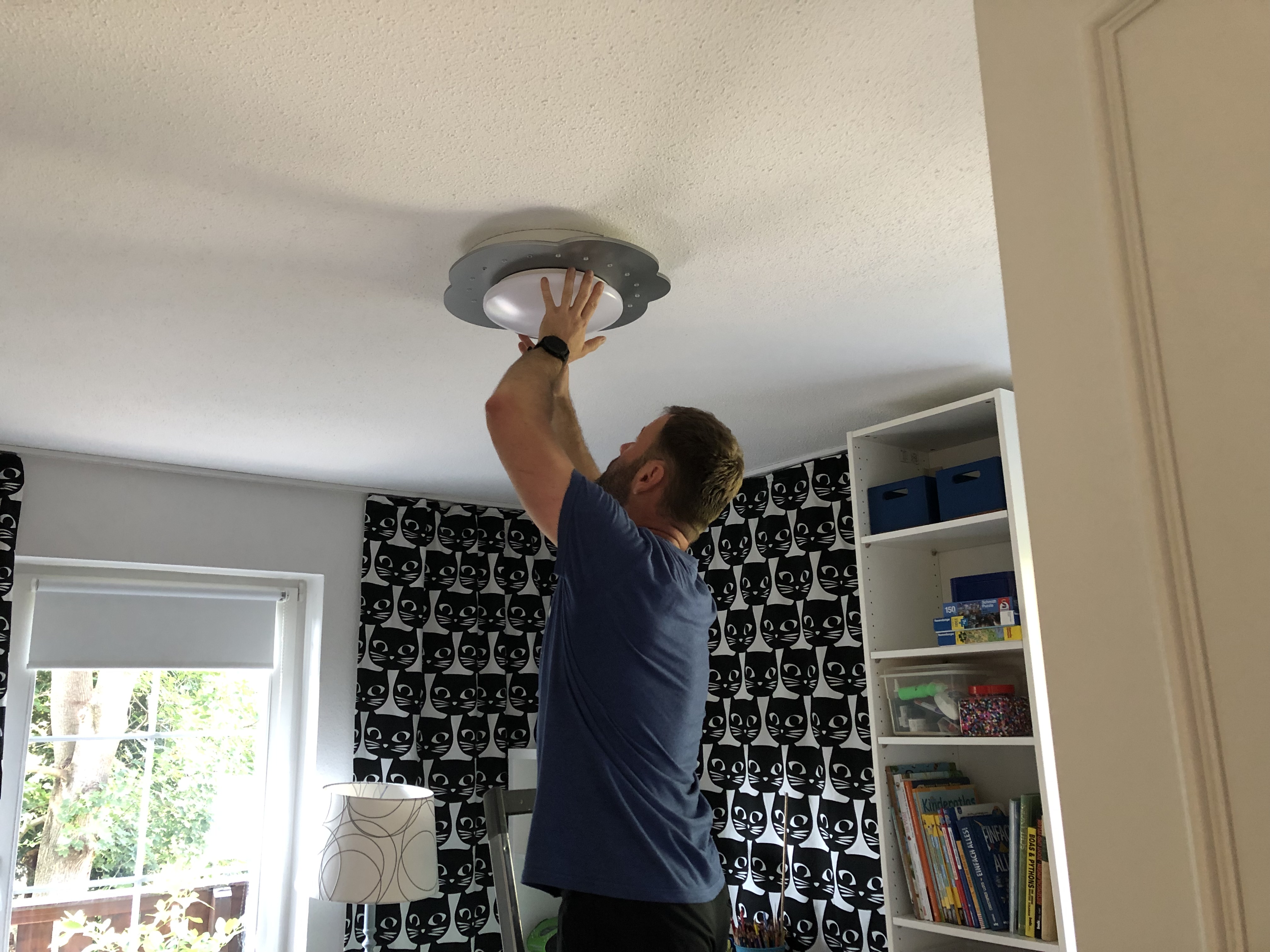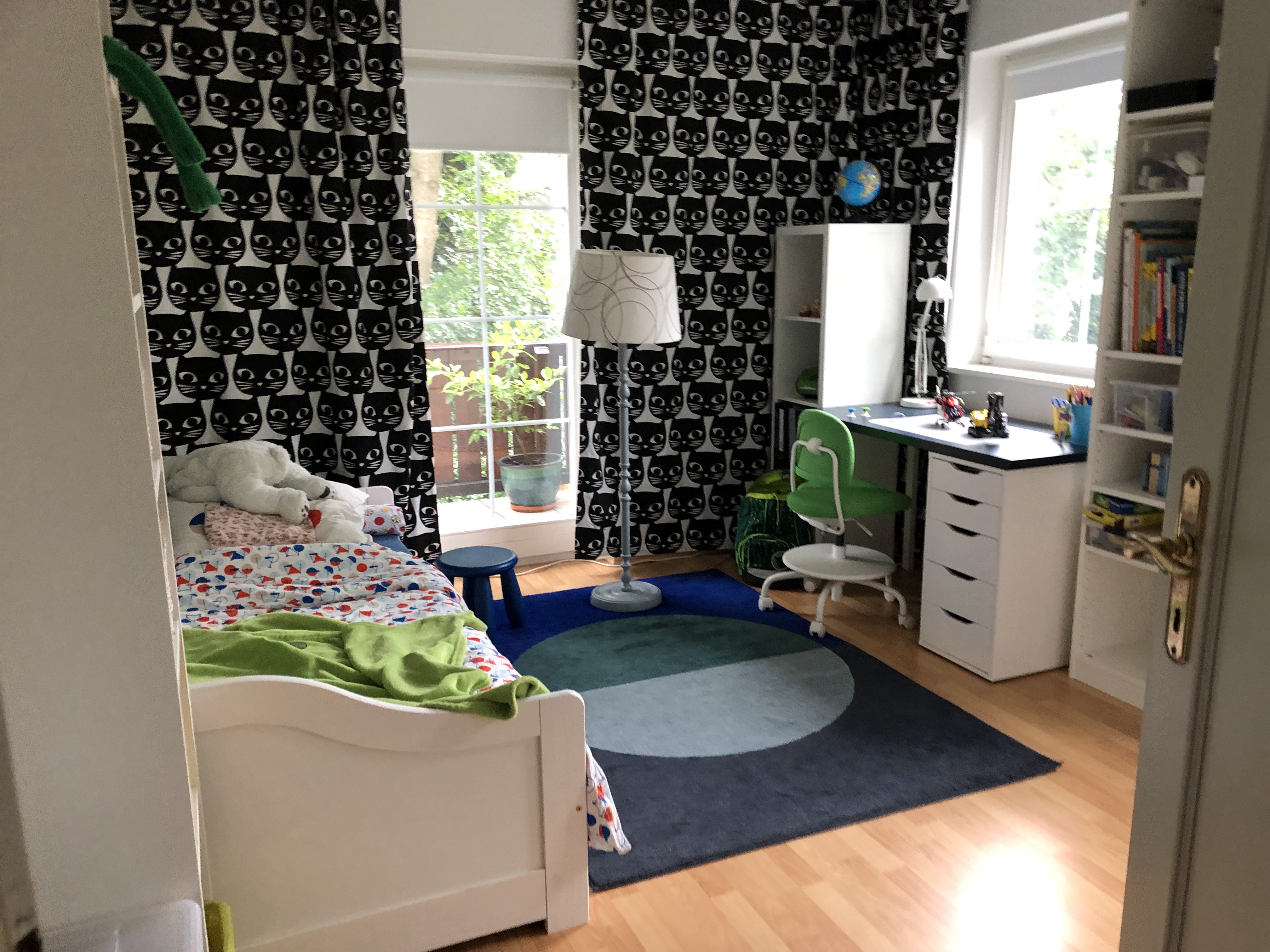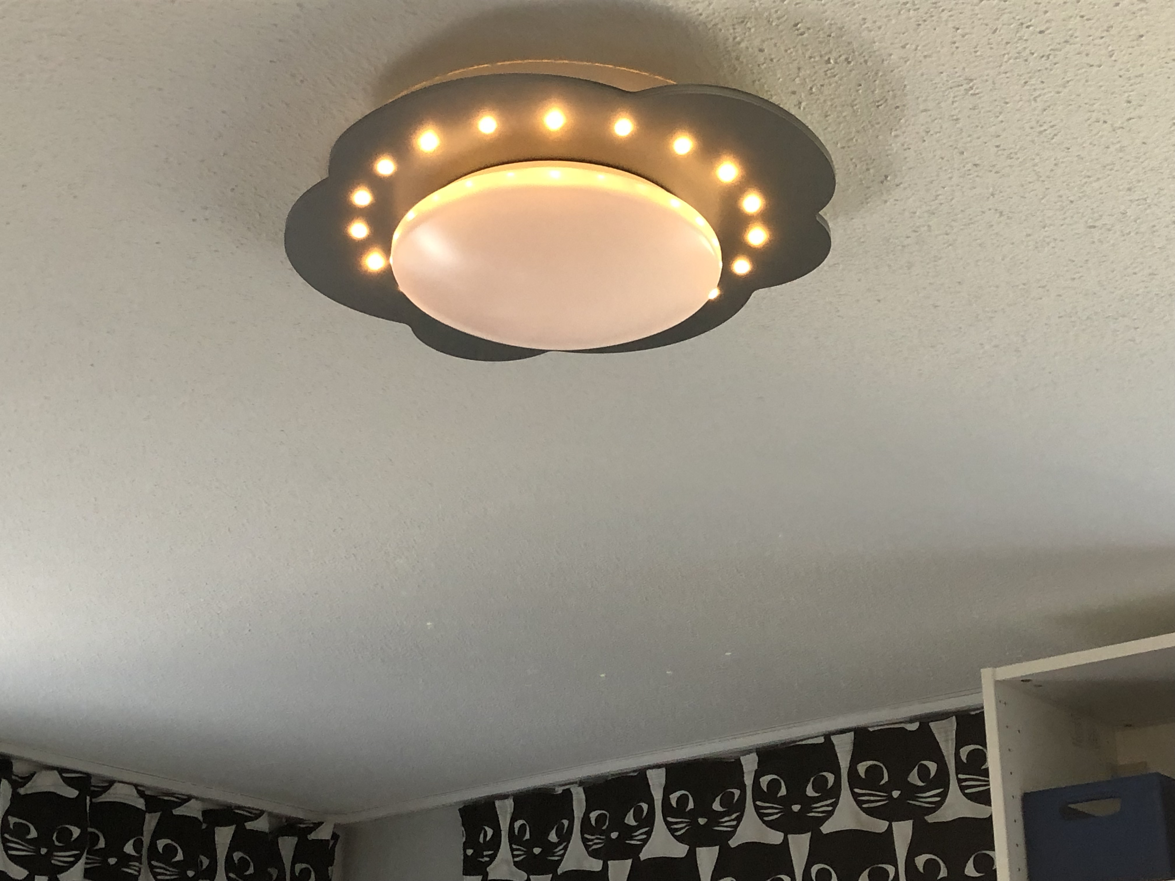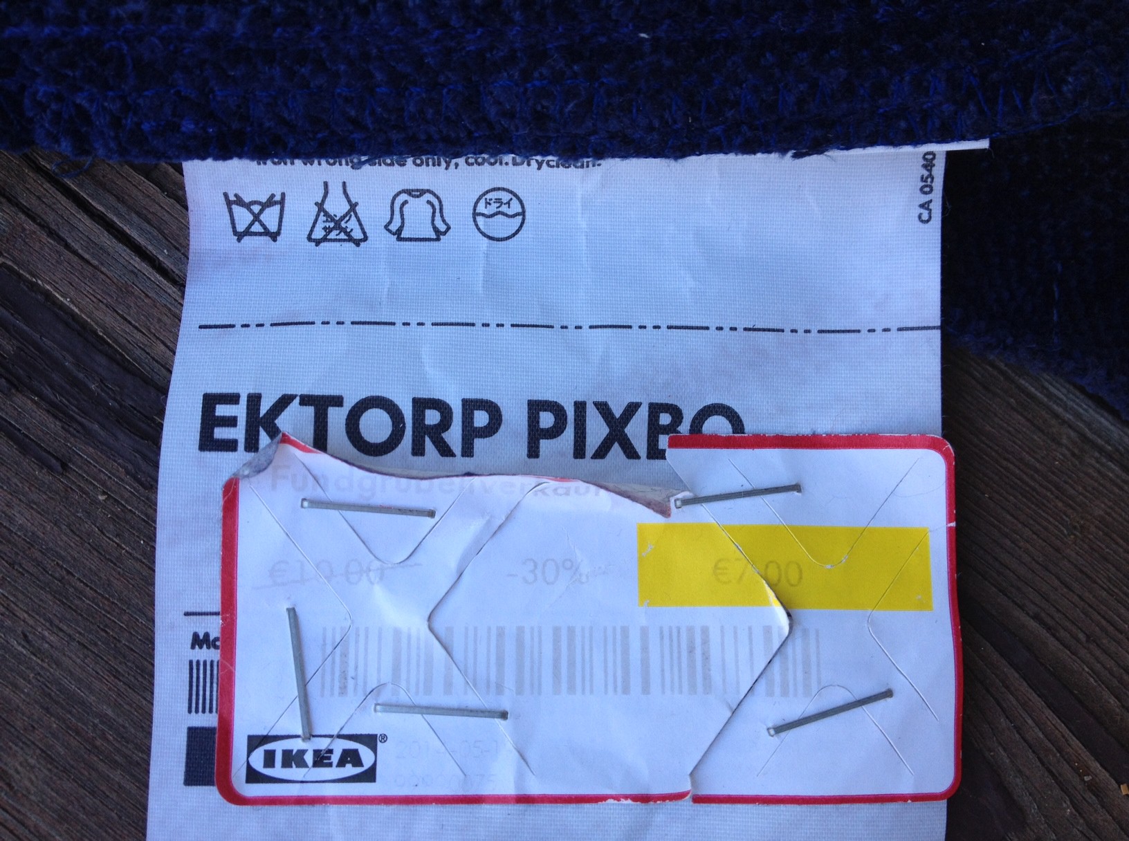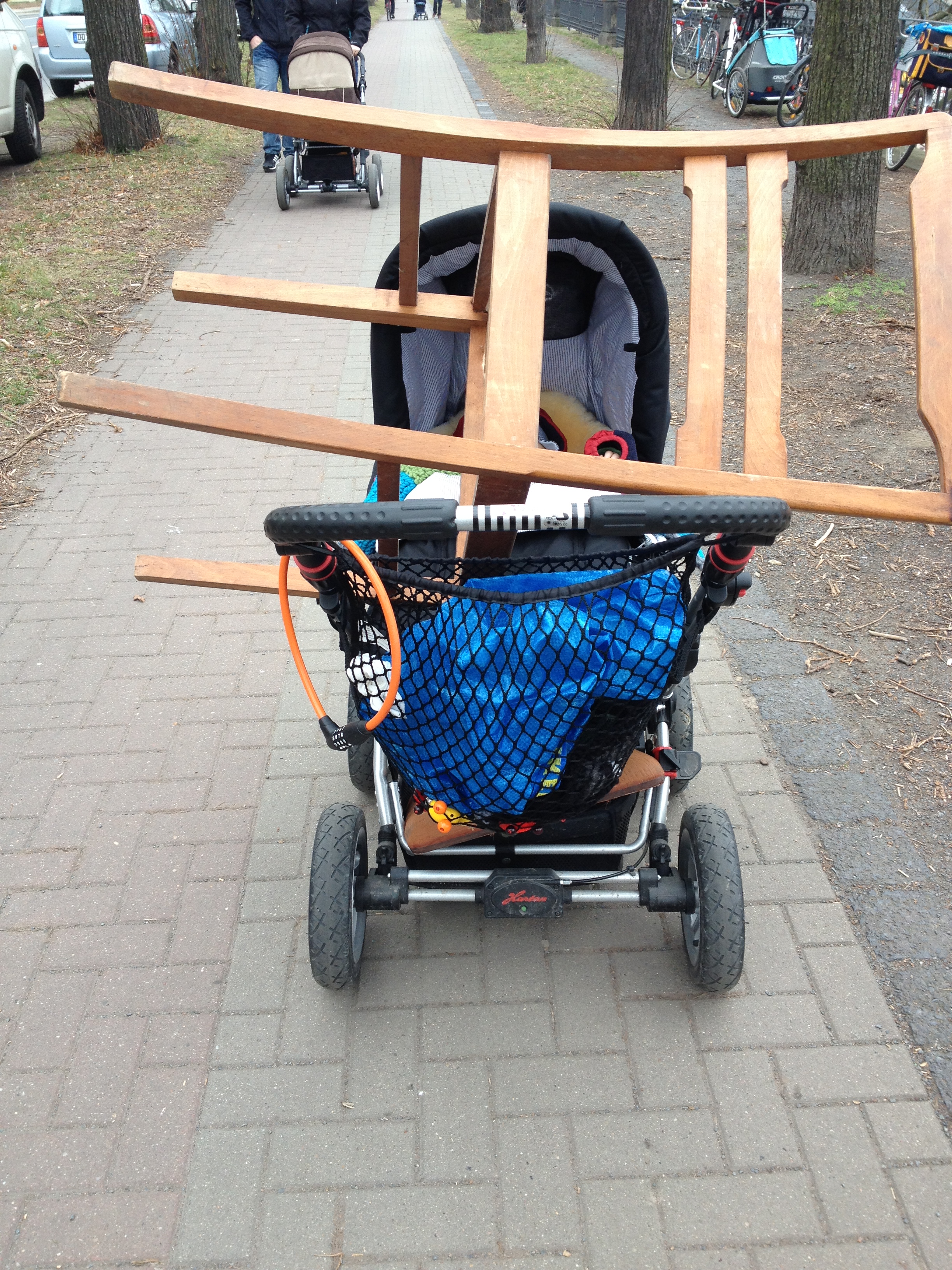 Als nächstes habe ich ein Zierband quer drüber genäht. Schief, versteht sich, ich konnte die Stecknadeln nicht finden! Eine hübsche Applikation wäre bestimmt auch ganz niedlich oder man könnte diese Aufbügelmotive endlich mal verarbeiten, die eh nur rumliegen in der Nähkiste…