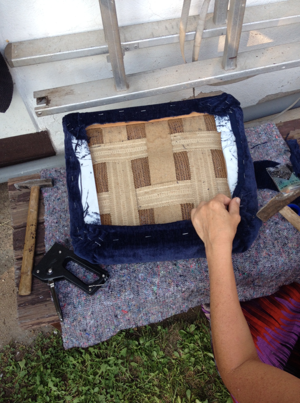 Als letzten Schritt habe ich das ganze außen rundherum mit Schrägband eingefasst. Fertig!