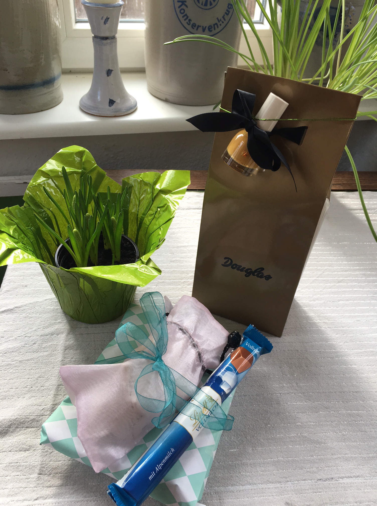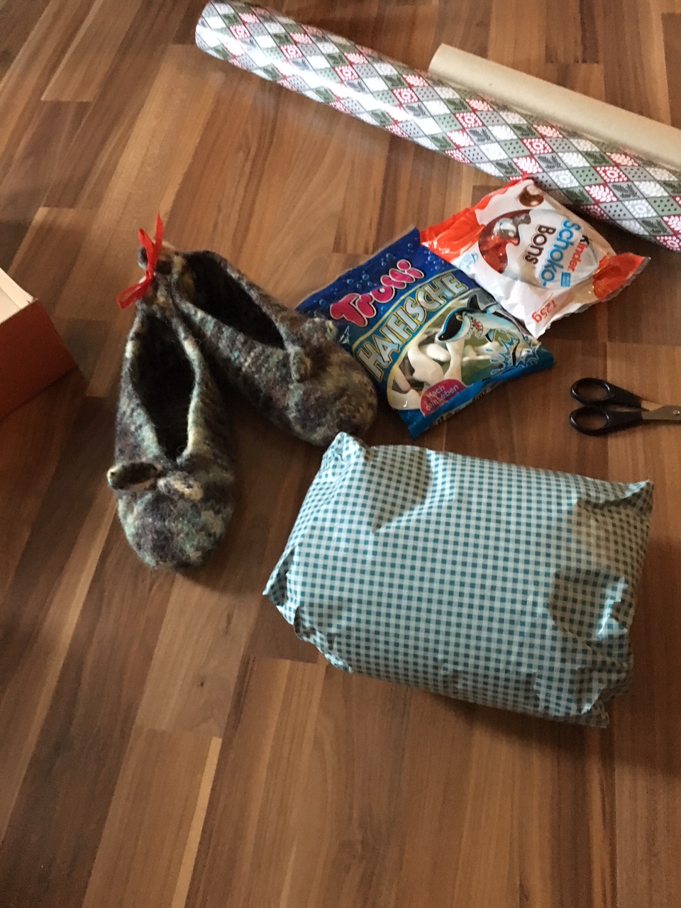 Heute ist mein letzter Urlaubstag, ich bin mit Gretel verabredet. Das kleine Gretelkind hatte Geburtstag, deshalb packe ich. Leider habe ich nur noch Weihnachtspapier, aber vielleicht merkts ja keiner? Ich freu mich schon auf den Mädelsvormittag…