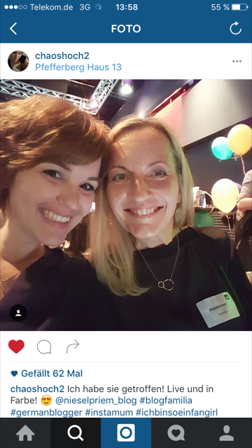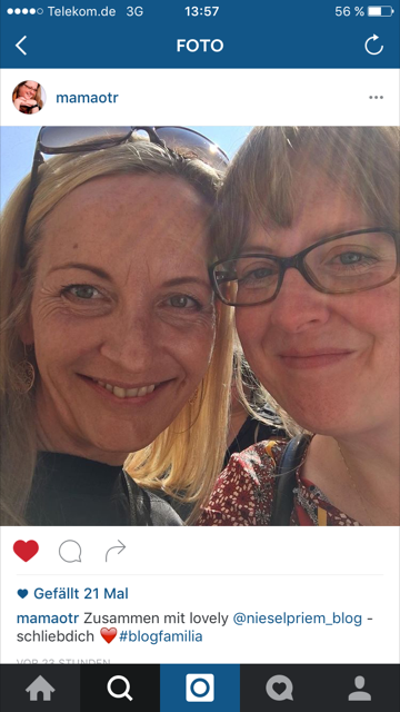 Vielleicht ist das das Geheimnis. Selbst wenn du den Menschen hinter dem Blog zum ersten Mal siehst, hast du ja bereits ein „Bild“ von ihm, weißt über viele seiner Ansichten und Erlebnisse das, was er davon preisgeben wollte. Ist er dir nah auf eine vertraute Art. Und gerade wenn man über „Familie“ schreibt, macht jeder Schreibende „auf“, lässt den Leser ein Stück weit teilhaben an seiner Gefühlswelt. Es gibt also schon eine Verbindung, bevor man diesen Schreibenden das erste mal in den Arm nimmt. Vielleicht fällt auch diese offene Herzlichkeit so leicht, wenn man im Gegenüber jemanden erkennt, dem man sich ebenso nah fühlt durch dessen Blog.IMG_1689