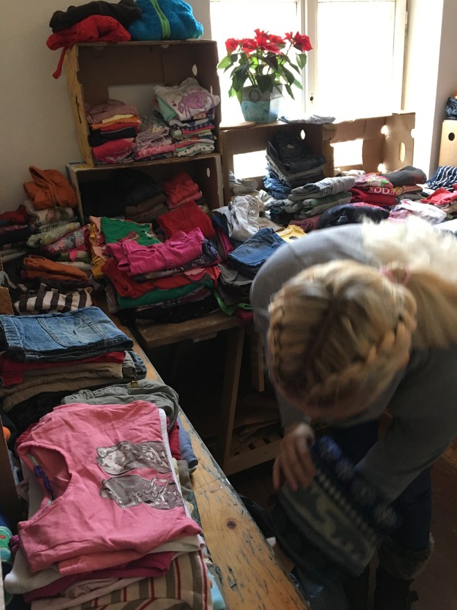 Es gab so viel, was mich berührt hat. Der Umstand, dass so viele und auch wirklich preislich intensive Dinge gespendet worden waren. Über bestimmte Fundstücke, wie zum Beispiel ein Tütchen mit Heilwolle von „ganz besonderen Schafen“, auf dessen Verpackung jemand ganz lieb draufgeschrieben hat, wofür und wogegen diese Wolle anzuwenden sei. Es gab schurwollne Unterhosen neben Polyester-Schneeoveralls, Kinderwägen und Tragetücher, Spielsachen, Bücher.