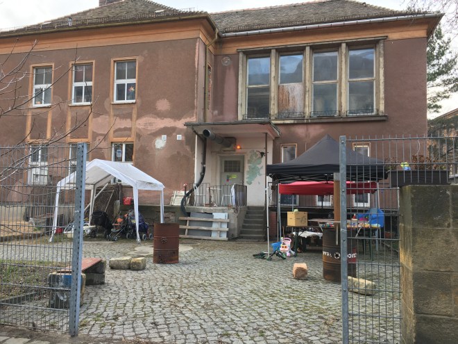 Dieses mal fand die Veranstaltung in den Räumlichkeiten eines alternativen Wohnprojektes in der Dresdner Friedrichstadt statt, das uns drei Räume zur Verfügung stellte. Ich fand das Ambiente sehr spannend und war erinnert an die Hausbesetzerzeit der Achtziger Jahre in der Dresdner Neustadt.
