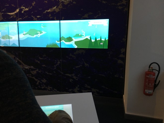 In der Schifffahrt-Ausstellung kann man an einem Simulator ein Boot zusammenbauen und auf einen Rennen schicken. Ein großer Spaß! Das Kleinste hatte das superste und schönste und ressoucenschonendste Boot (und eine sehr nette Ingenieurin-mich), aber der Mann hat trotzdem gewonnen. Die Sau lässt mich nie gewinnen! Und nicht mal eines der Kinder! Der hat bestimmt gemauschelt und betrogen…