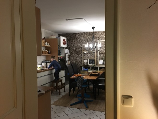 Der nächste Morgen, draußen ist es pechschwarz. „Ich bin hier der Backer“, schreits und schreitet bereits zur Tat. „Ich will bumsen!“, bei jedem Ei, „Ich mach das Mehl!“, und greift mutig mit beiden Händen rein. Kinder in der Küche… wunderbar. Wirklich ganz und gar wunderbar!