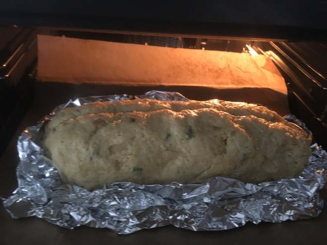 einkneten. Das alles kräftig durchkneten in der größten Schüssel die ihr habt und wieder eine Stunde ruhen lassen. Danach den Teigklops rausholen, eine längliche Rolle formen und aufs Backblech hieven. Ich habe eine dicke Wurst aus Alufolie drumrumgelegt, damit der beim Backen die Form nicht verliert. Dann mittig circa zwei Zentimeter tief einschneiden. Das sieht seltsam aus, ergibt aber am Ende dann die typische Stollenform.