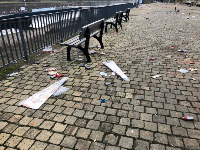 Aber in Pieschen habe ich am ersten Januar junge Menschen gesehen, die mit Beuteln bewaffnet am Elbufer entlang gingen und Silvestermüll aufsammelten. Und später auch in Blasewitz eine ganze Familie, die während eines Neujahrsspazierganges Beutel dabei hatte, aus denen Holzstöcke von Raketen ragten.