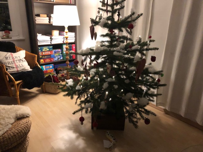 Anyway, wie wir Sachsen so sagen, der Baum steht! Und nu gugge ma, er nadelt, als wäre es der vollkommen normalste fuffzehnte Dezember überhaupt! Als wäre nichts, oder alles.