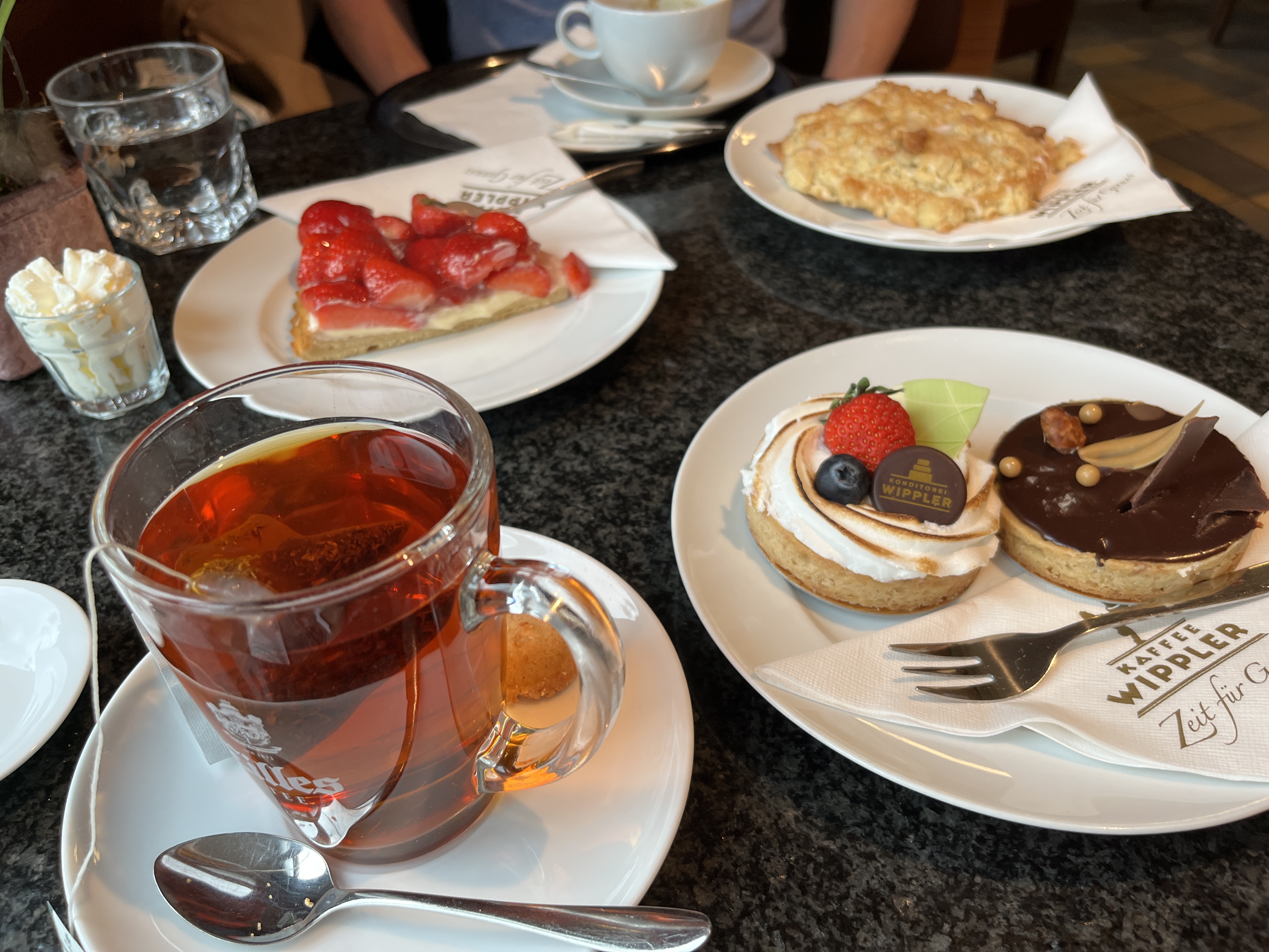 Weil wir gerade bei „reingezogen“ waren. Gesunde Ernährung wird ja auch im Sommer groß geschrieben. Da man bei der Hitze lieber was Kaltes und Leichtes zu sich nehmen soll, nehme ich regelmäßig kalte Kuchen und leichte Törtchen. Die Fotodokumentation lügt nicht.