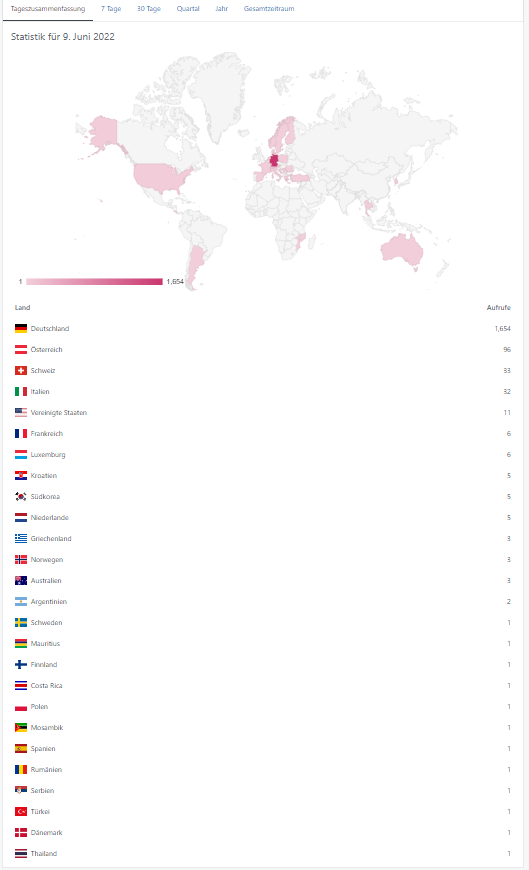 Kennt sich wer aus und möchte seine Meinung kundtun? Bitte, nur zu. Ich weiß ja nicht, ob ihr das wusstet, aber wir sind hier „indornäschonnel“, ich hab da mal einen screenshot gemacht aus der Statistik. Es liest auch offensichtlich mindestens eine Person aus Polen hier mit (okay, aus Costa Rica und Südkorea sind es genauso viele), die werde ich besuchen fahren! Wenn´s in Kolberg zu voll ist, dann fahren wir die polnischen Leser:in besuchen – abgemacht! Bitte mal Handzeichen, bei wem wir klingeln sollen!