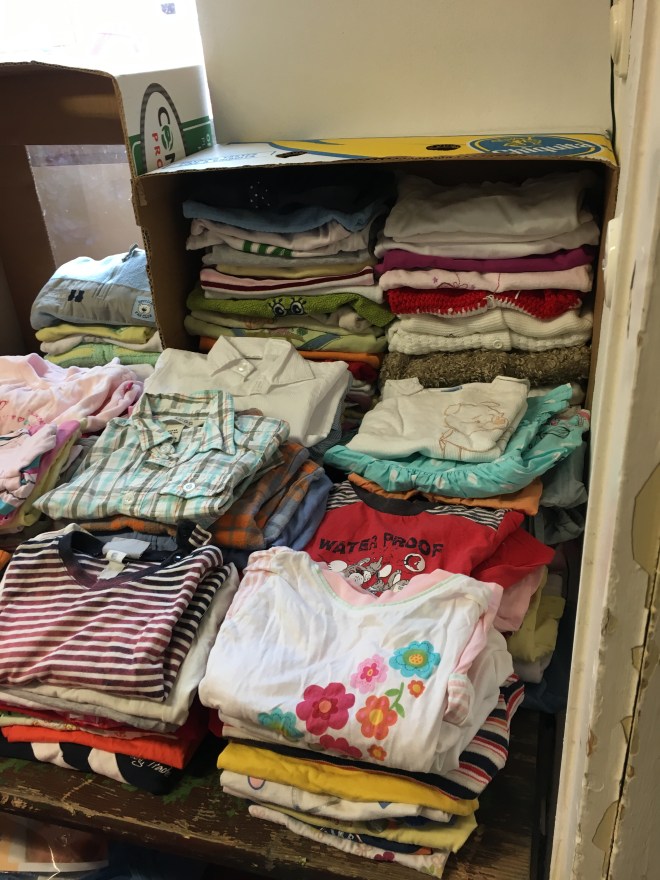 Nachmittags regnet es und wir sind auf dem Dachboden und sporteln.