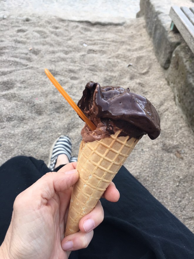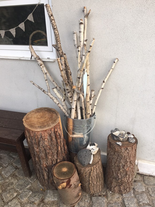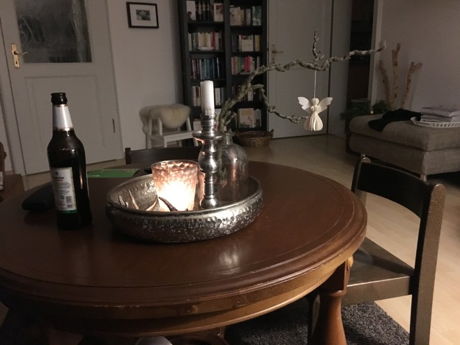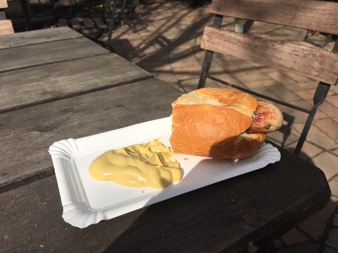 Wir haben auch an diesem Wochenende Biergartentrainig mit der Grauen gemacht. Das ist wichtig! Denn der Hund muss ja lernen, wo sein Platz ist, und der Platz unseres Hundes ist im Biergarten zwischen unseren Stühlen – das muss man üben, und oft wiederholen! Besonders der Mann musste hart überredet werden, gestern schon wieder Bier zu trinken. Die Kinder haben wir sich selbst überlassen, der Älteste hatte das Sagen. Dem Hund haben wir ein Stück getrocknetes Reh überlassen, ich hatte drei Kugeln Eis, der Mann drei Kugeln Bier.