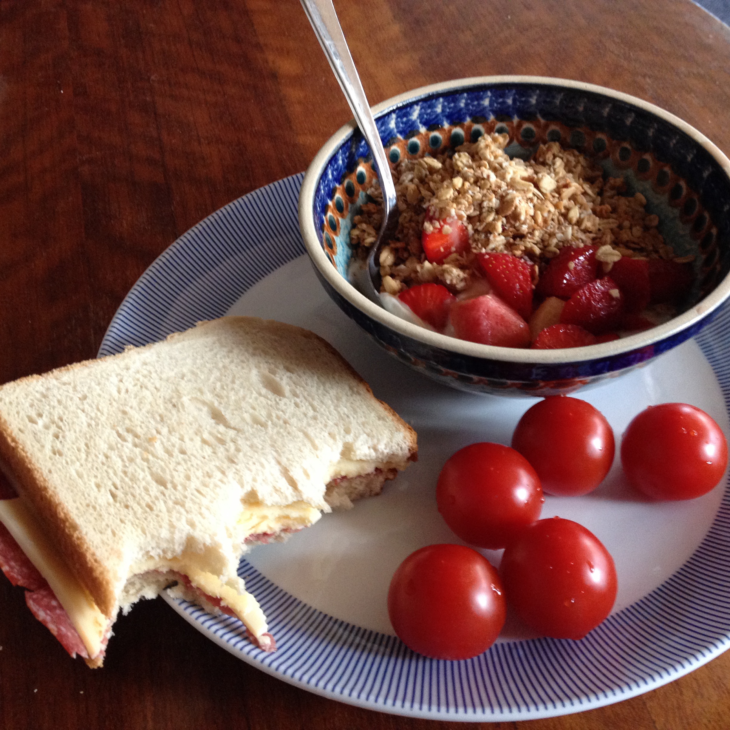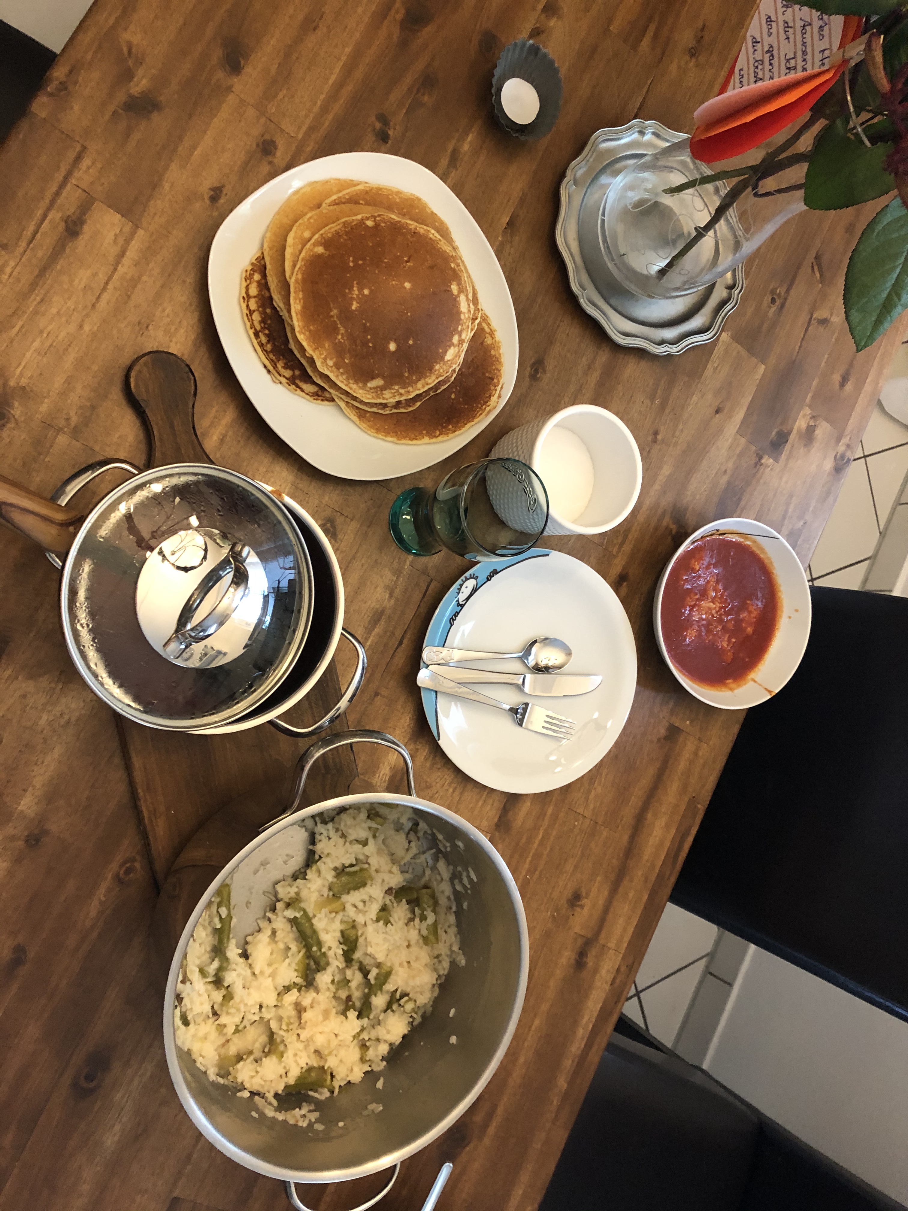 Obstmandalafreier Frühstückstisch. Ja, ich würde auch lieber an einem anderen Tisch sitzen. Life is not a Ponyhof. Iss deine gezuckerten Teigwaren und halt die Klappe, Nieselpriem.