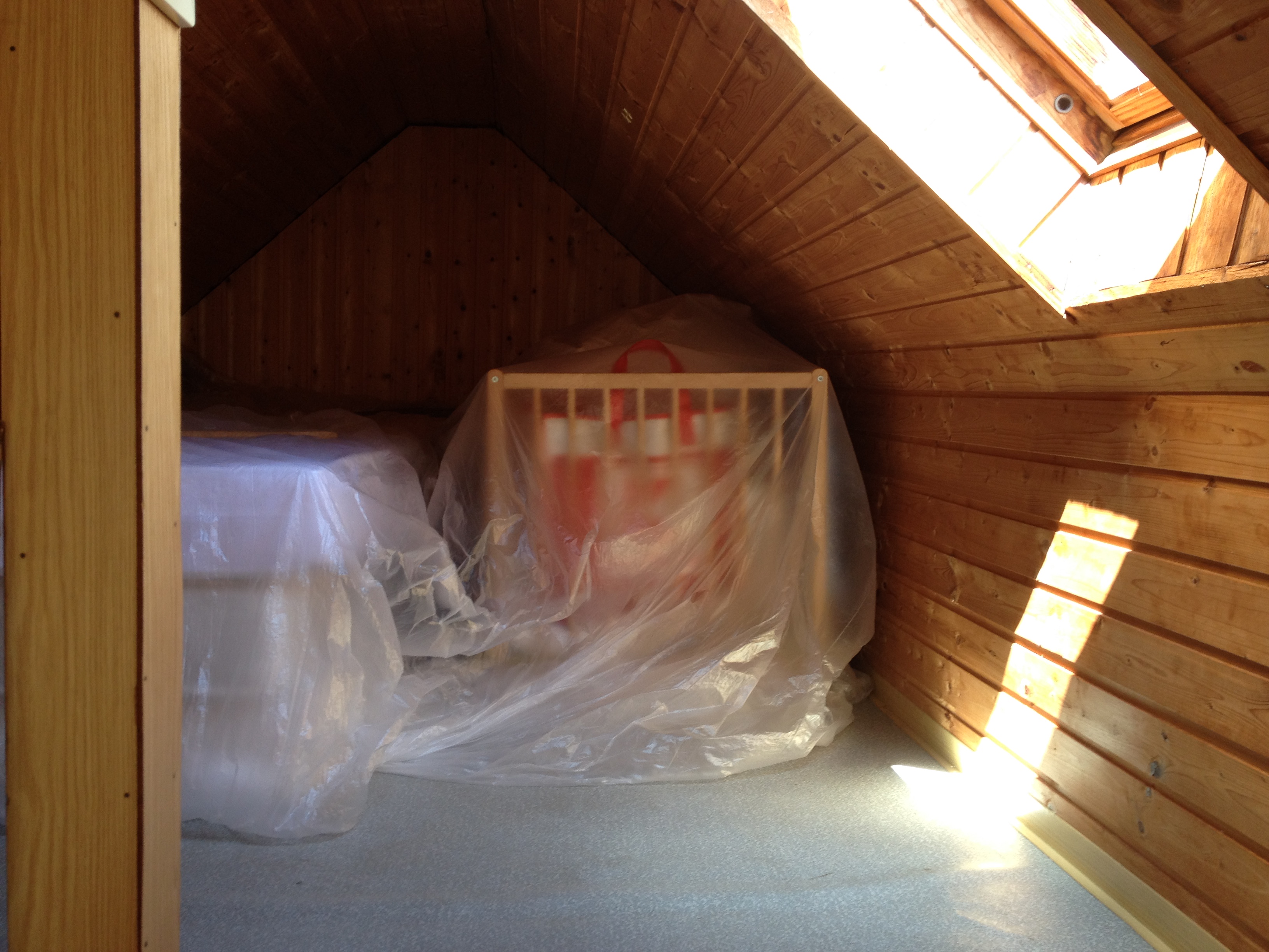 Nachmittags regnet es und wir sind auf dem Dachboden und sporteln.