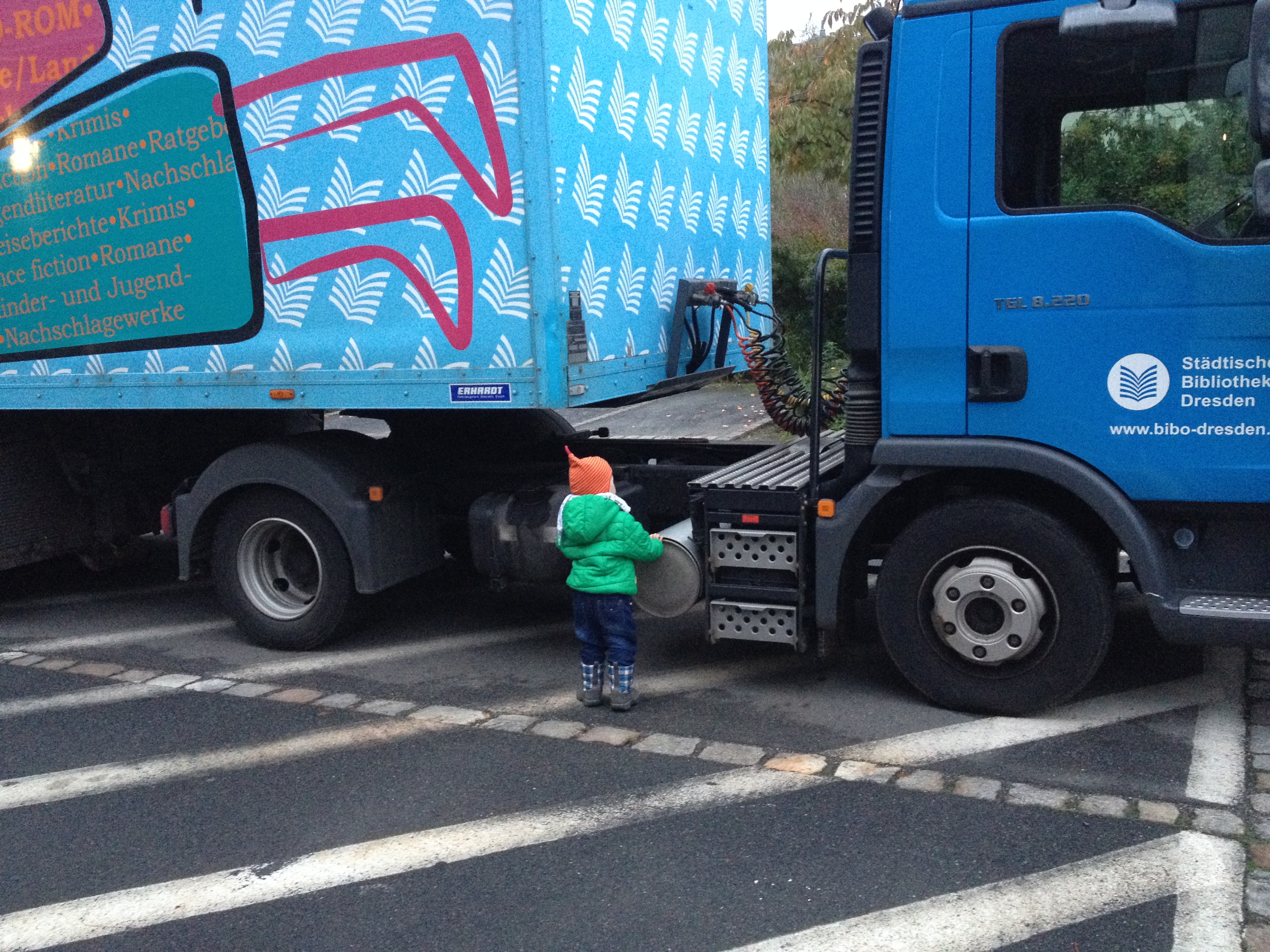 Jedenfalls waren wir mit dem Kind und ohne Hund mit der Dresdner Schwebebahn fahren, die im übrigen die älteste der Welt ist. Das war schön und vor allem entspannend, weil wir früh dran waren und deshalb alleine dort.