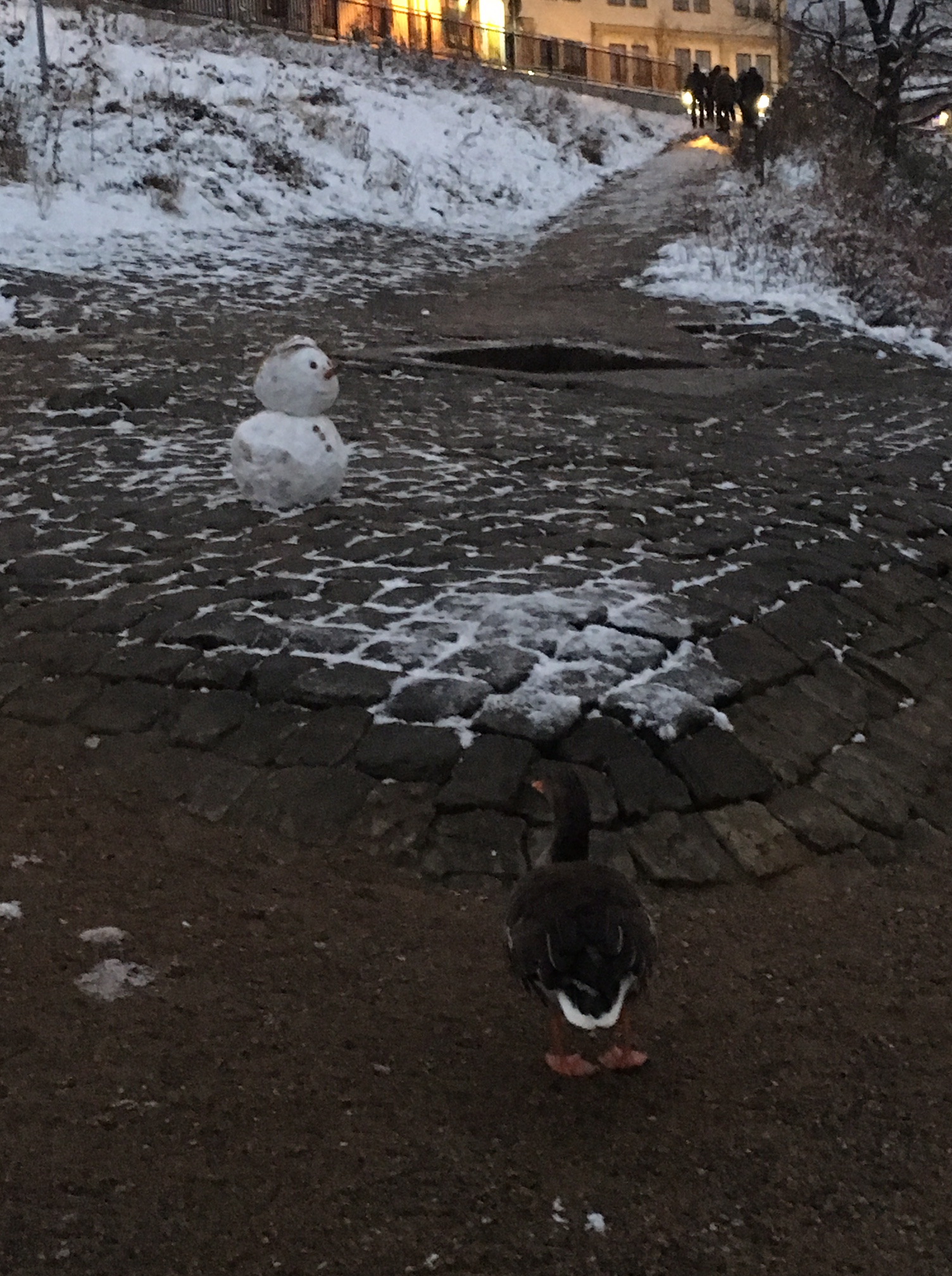Gelacht. Über diese unwillkürliche Inszenierung. „Aaaah, zu Hilfe! Ein riesiges Eichhorn“. (Im November sind mancherorts in den sozialen Medien wieder die Dinos los. Was es damit auf sich hat, kann man zum Beispiel