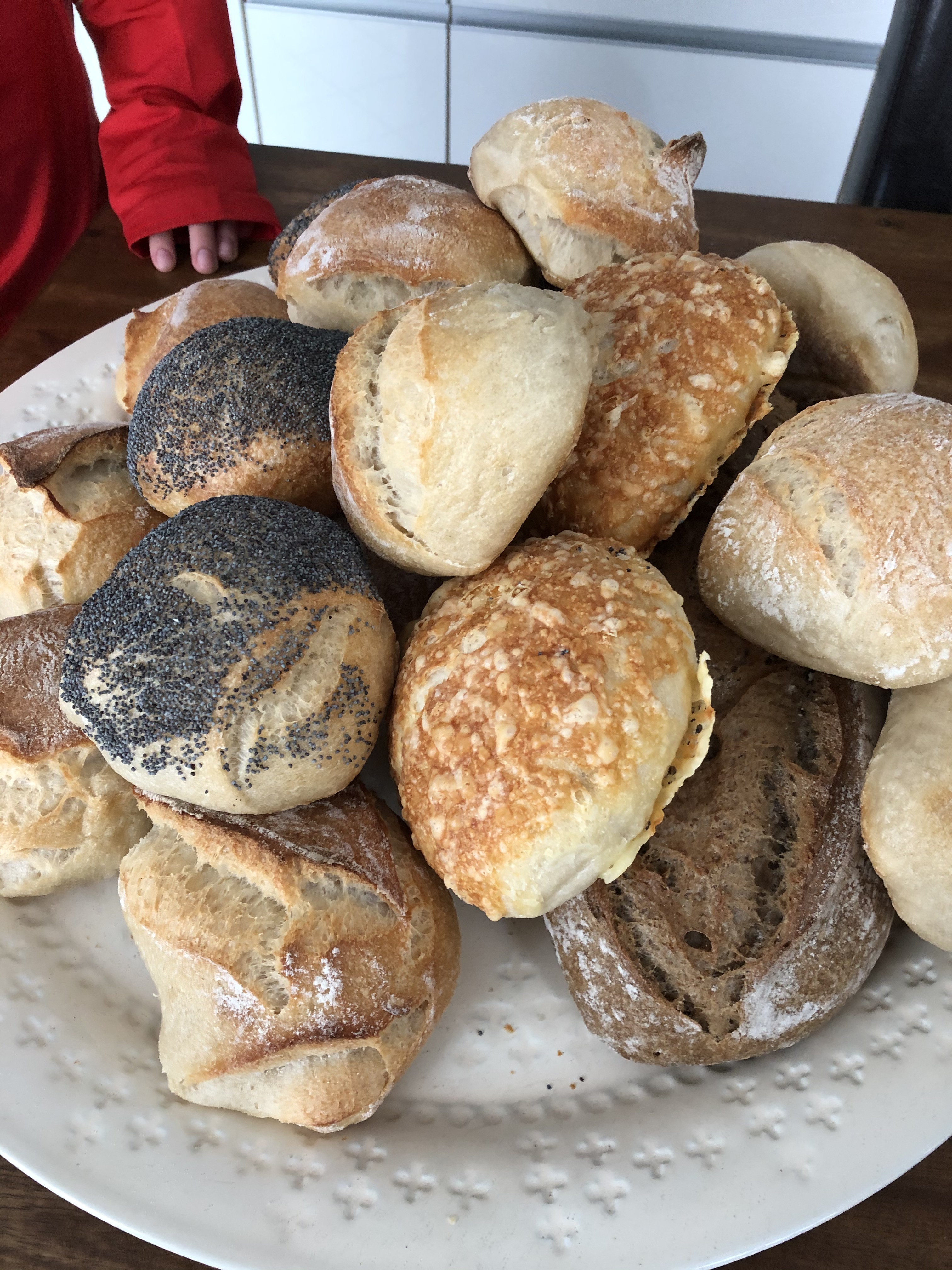 Beim Heimkommen erwarten mich Besucherschuhe, sie haben frische Semmeln mitgebracht.