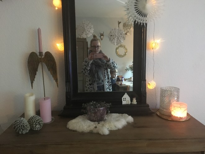 Nachmittags trage ich den Kuchen zu Gretel und stehe wieder vor diesem Spiegel. 🙂