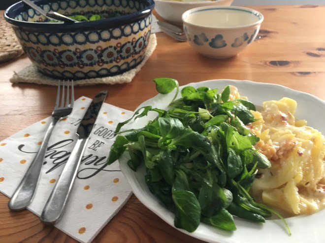 Die beiden Männer schlafen bis Mittag und das Süßilein und ich machen Kartoffelgratin.